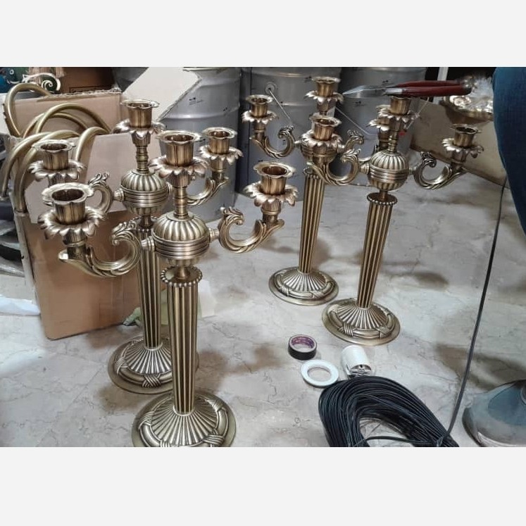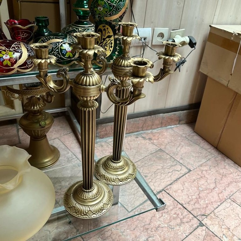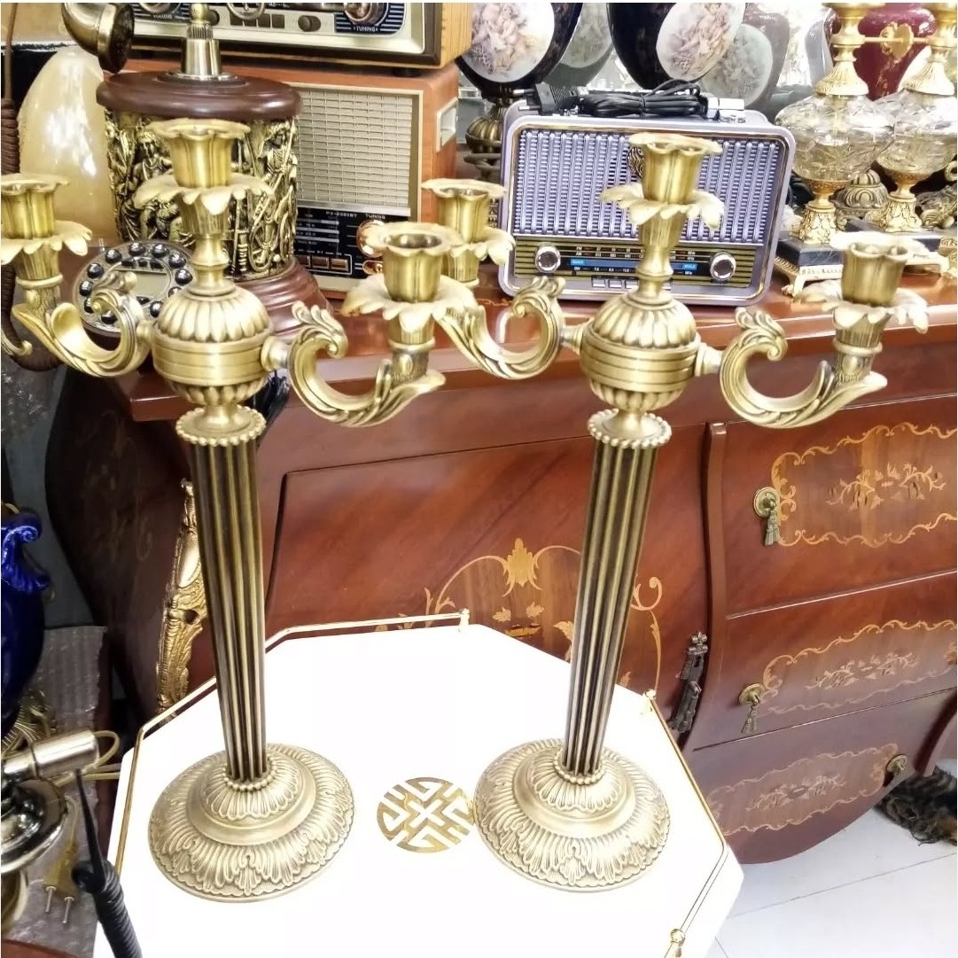 شمعدان فلورانس شمعدان رومیزی 3 شاخه آنتیک شمعدانی برنزی جا شمعی برنز شمعدون برنزی مبلمونسرا مدل 285115