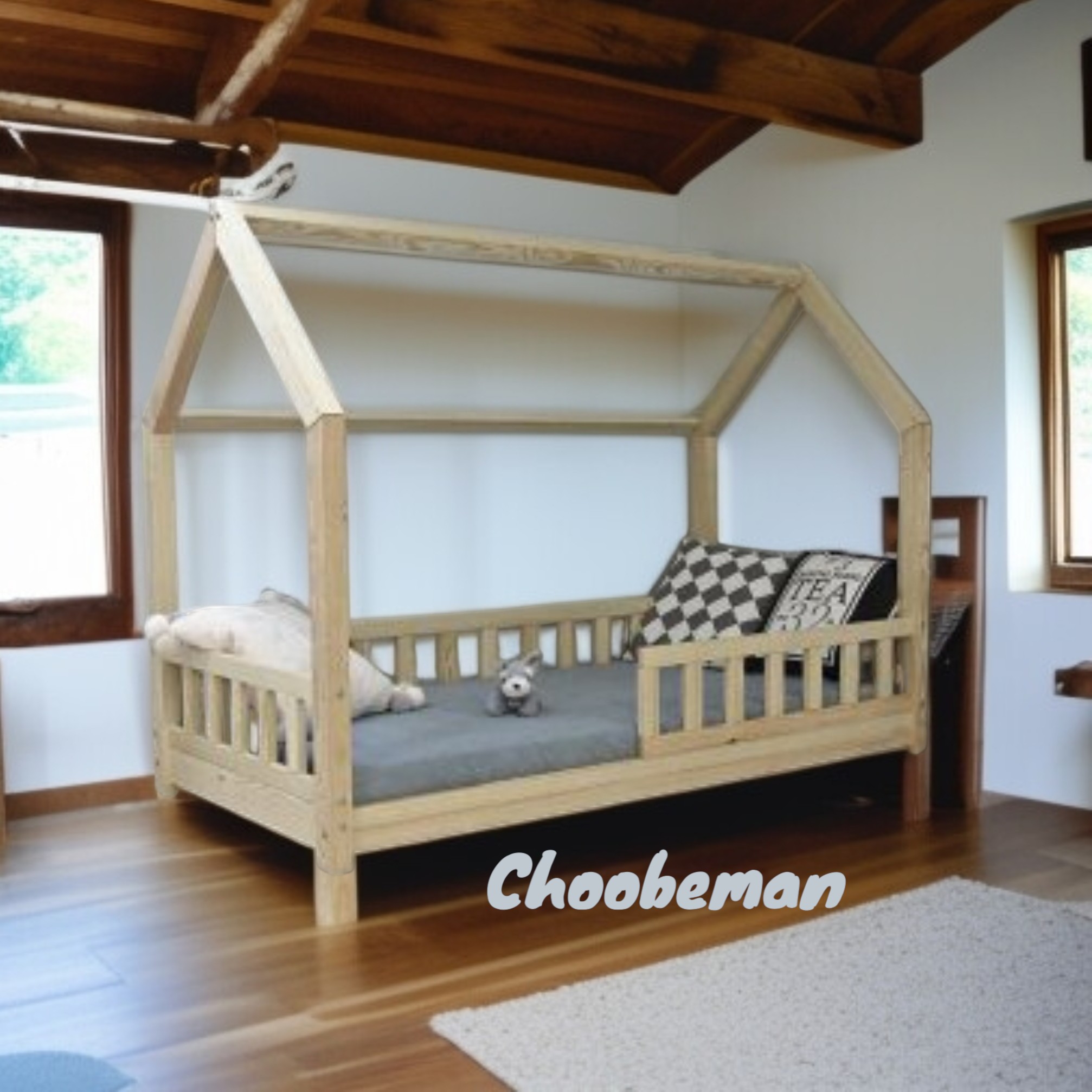 تخت خواب کلبه ای کودک چوبی مناسب تشک 70-130 مبلمونسرا مدل 226533