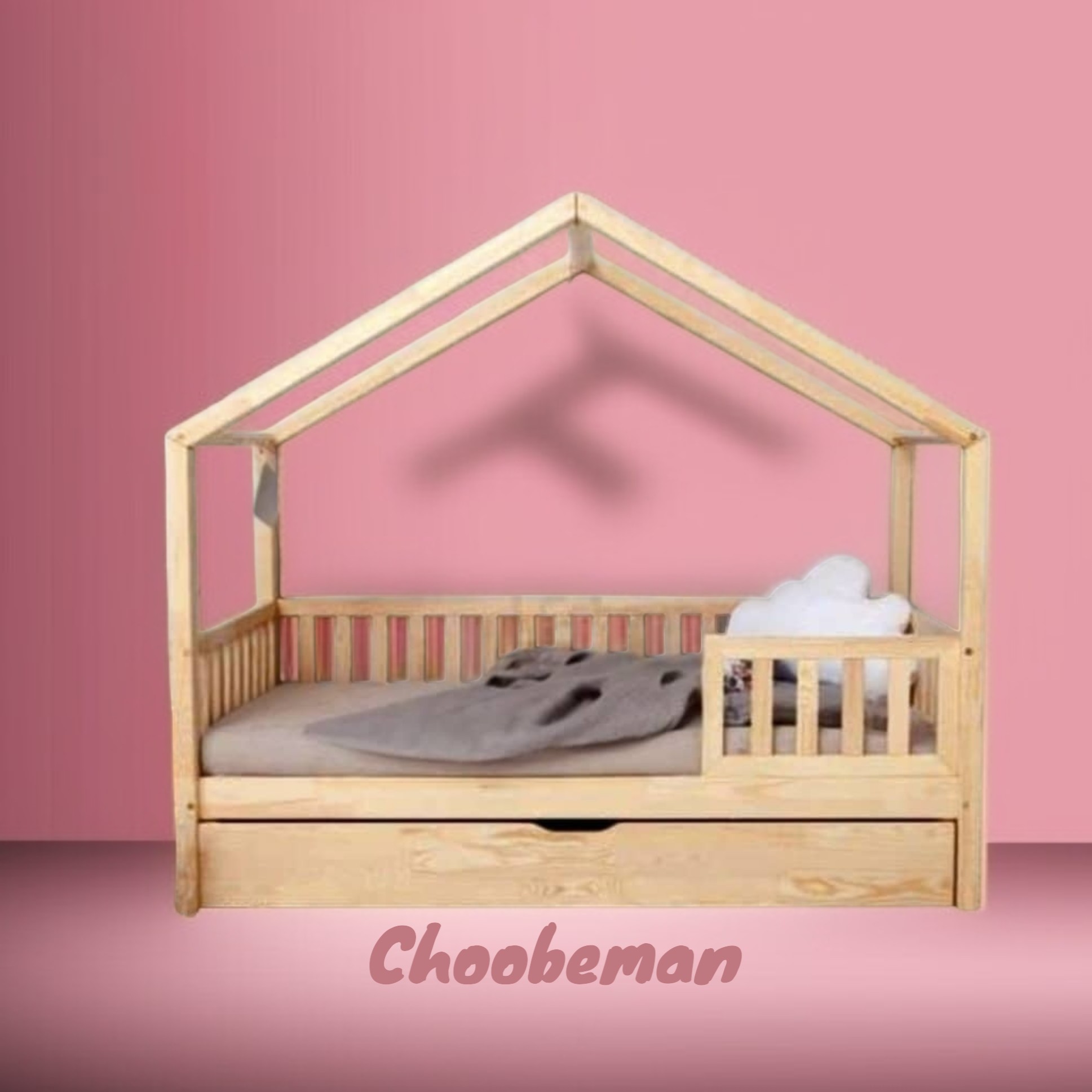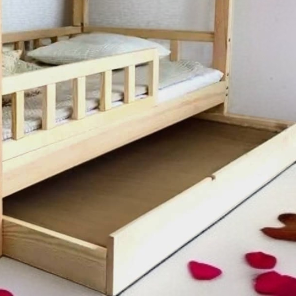 تخت خواب کلبه ای چوبی کودک کشو دار مناسب تشک 70-130 مبلمونسرا مدل 228934