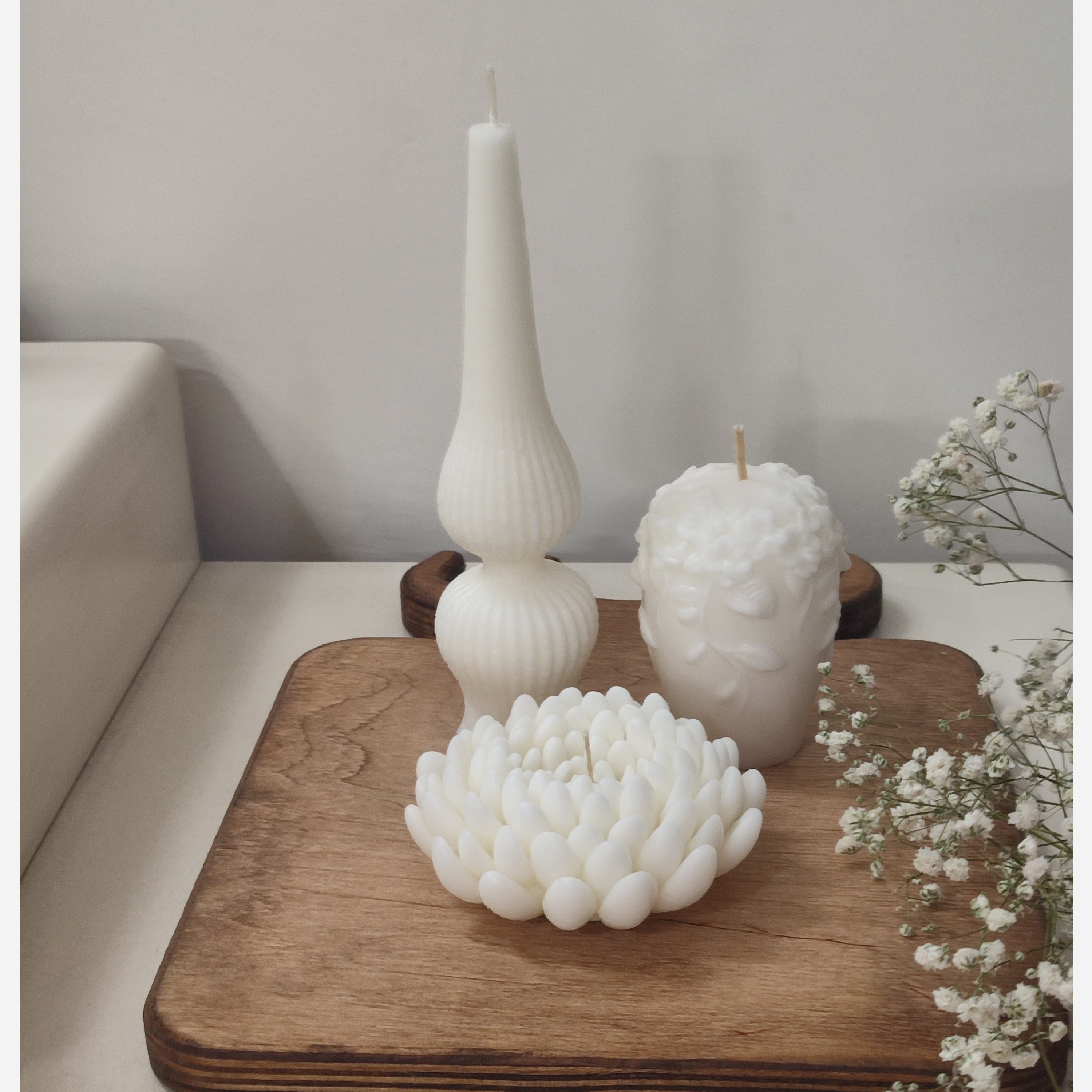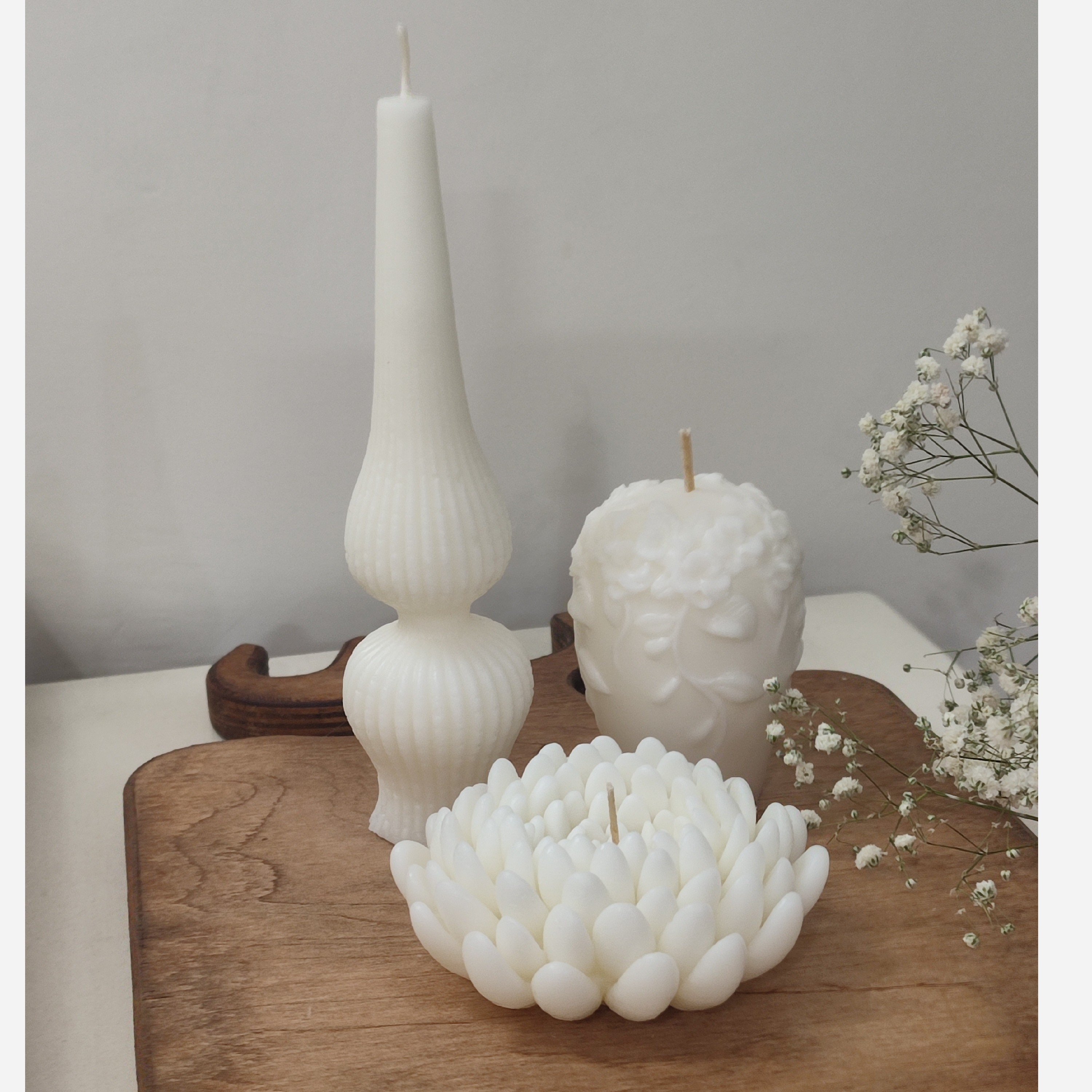شمع سه عددی سفید گلابدون،گل داوودی،مارسلا مبلمونسرا مدل 280217