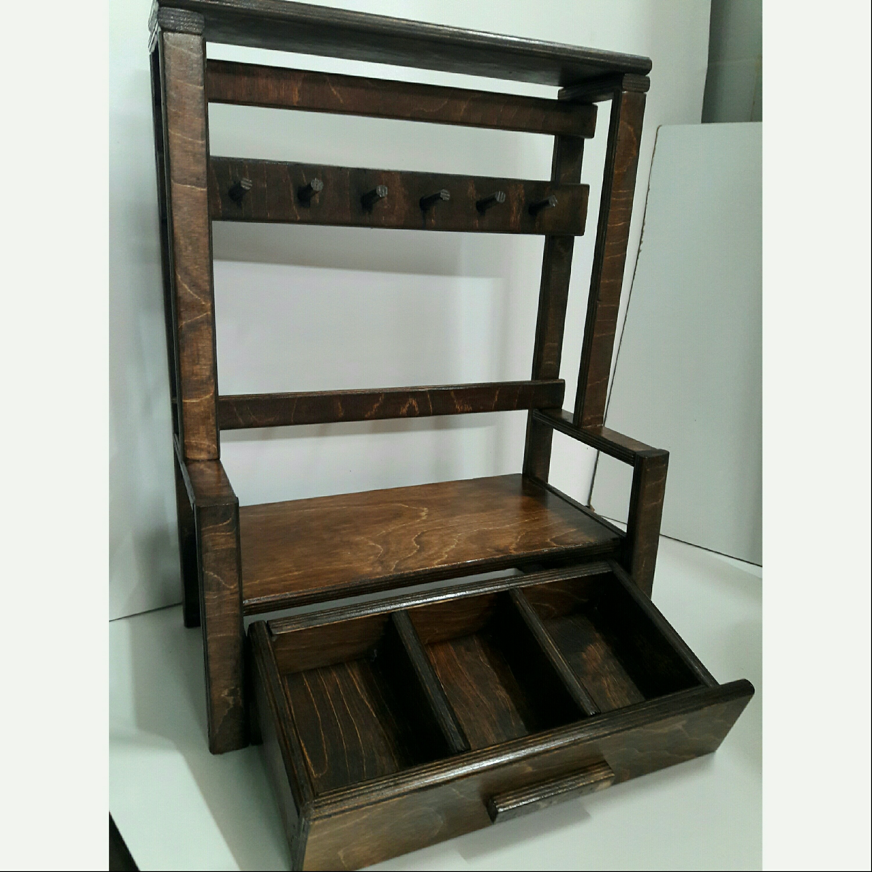 سلام دوستان عزیز.استند کافی بار کشو دار کاملا ضد آب و قابل شستشو،داری کشوی تفکیک شده و آویز جای استکان یا فنجان.ساخته شده از چوب پلای وود خارجی،کار بسیار زیبا مخصوص شما خاص پسندان. با تشکر از حمایت شما.
