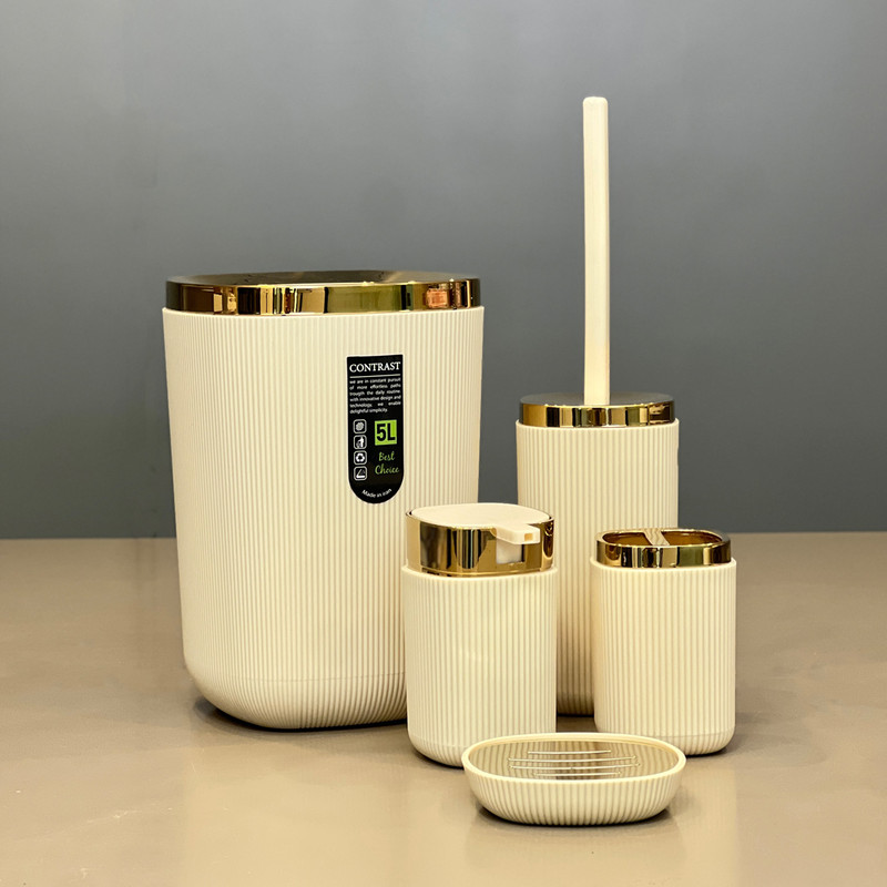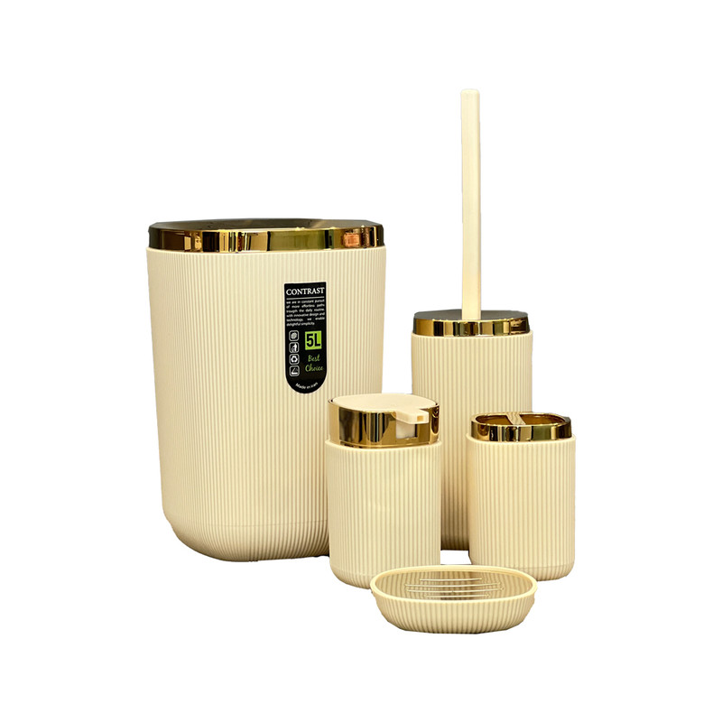 اگر به زیبایی و هماهنگی فضای حمام و سرویس بهداشتی خود اهمیت میدهید، ست سرویس بهداشتی 5 تکه طرح طلایی انتخابی شیک و چشمنواز برای شماست. این محصول پنج تکه دارد و از پلاستیک فشرده باکیفیت تولید شده است. ترکیب رنگ کرم و سفید همراه با جزئیات طلایی، جلوهای لوکس و گرم به محیط شما میبخشد. طراحی خاص و رنگهای خنثی این ست، آن را به گزینهای مناسب برای انواع دکوراسیون تبدیل کرده است. این محصول نهتنها برای مصرف روزمره، بلکه برای جهیزیه تازهعروسان نیز گزینهای ایدهآل محسوب میشود.