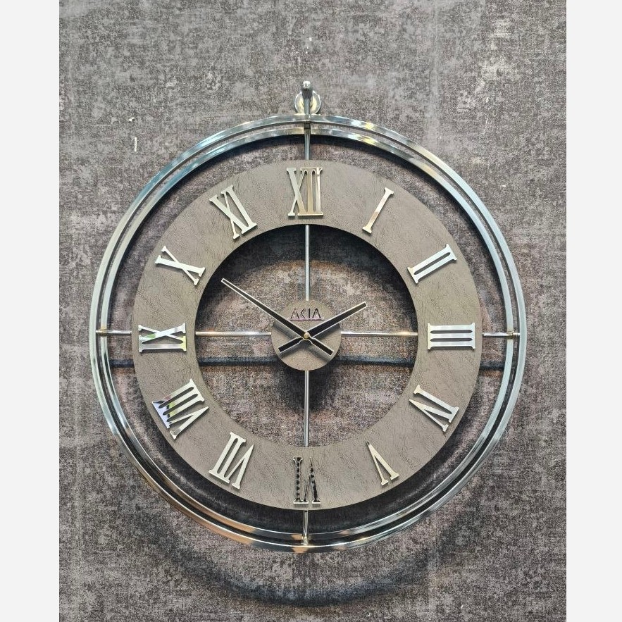 ساعت دیواری مدرن فلزی دورینگ آبکاری نقره ای مبلمونسرا مدل 238229