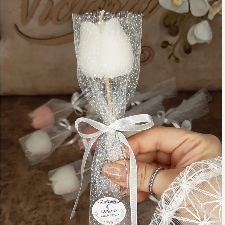 گیفت گل لاله جنس شمع رنگ تور و شمع با سلیقه شما چاپ لیبل اختصاصی شما برای مشاوره بیشتر پیام بدهید