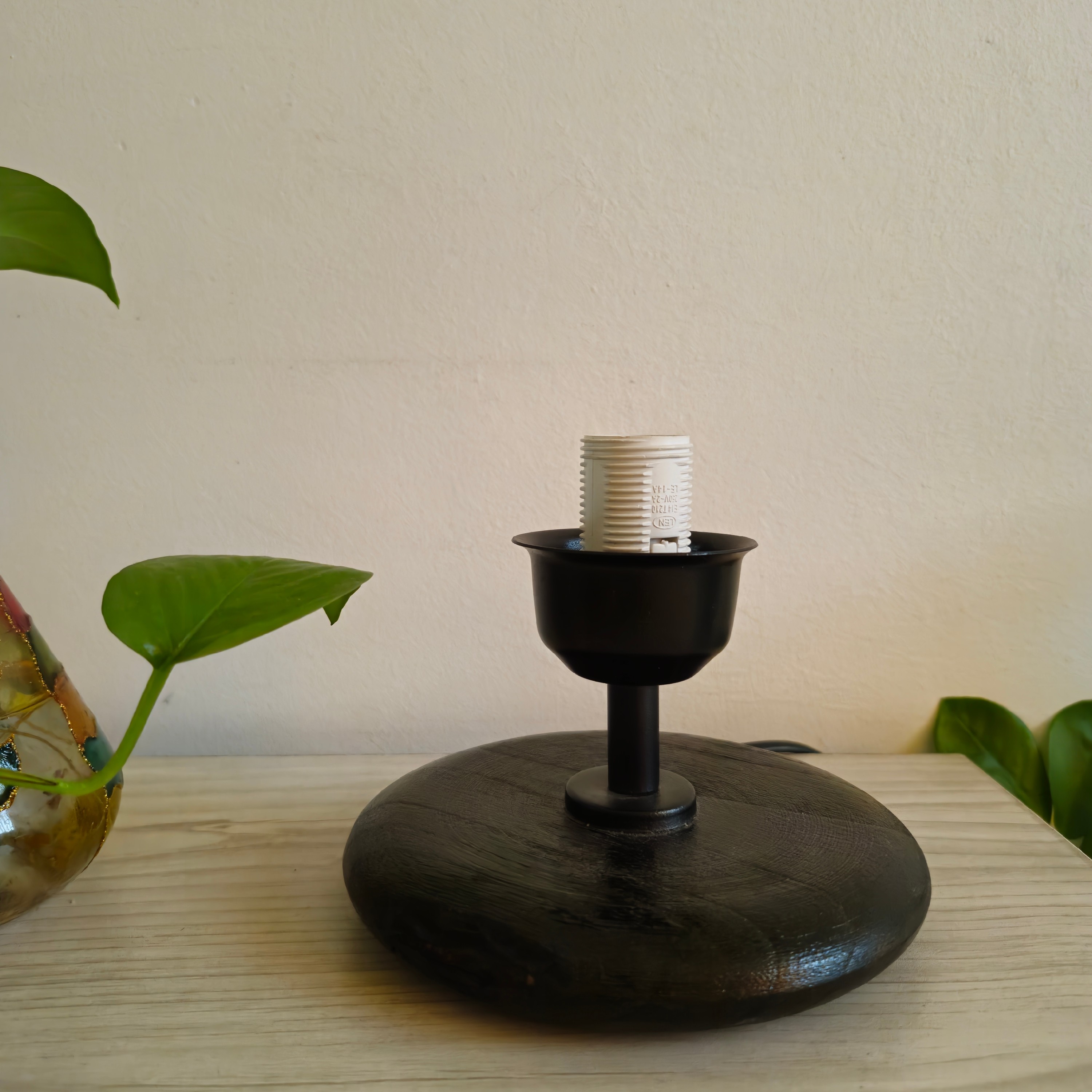 آباژور چوبی رومیزی تمام دستساز، تکنیک پایه استفاده از سوزاندن . رنگ مشکی