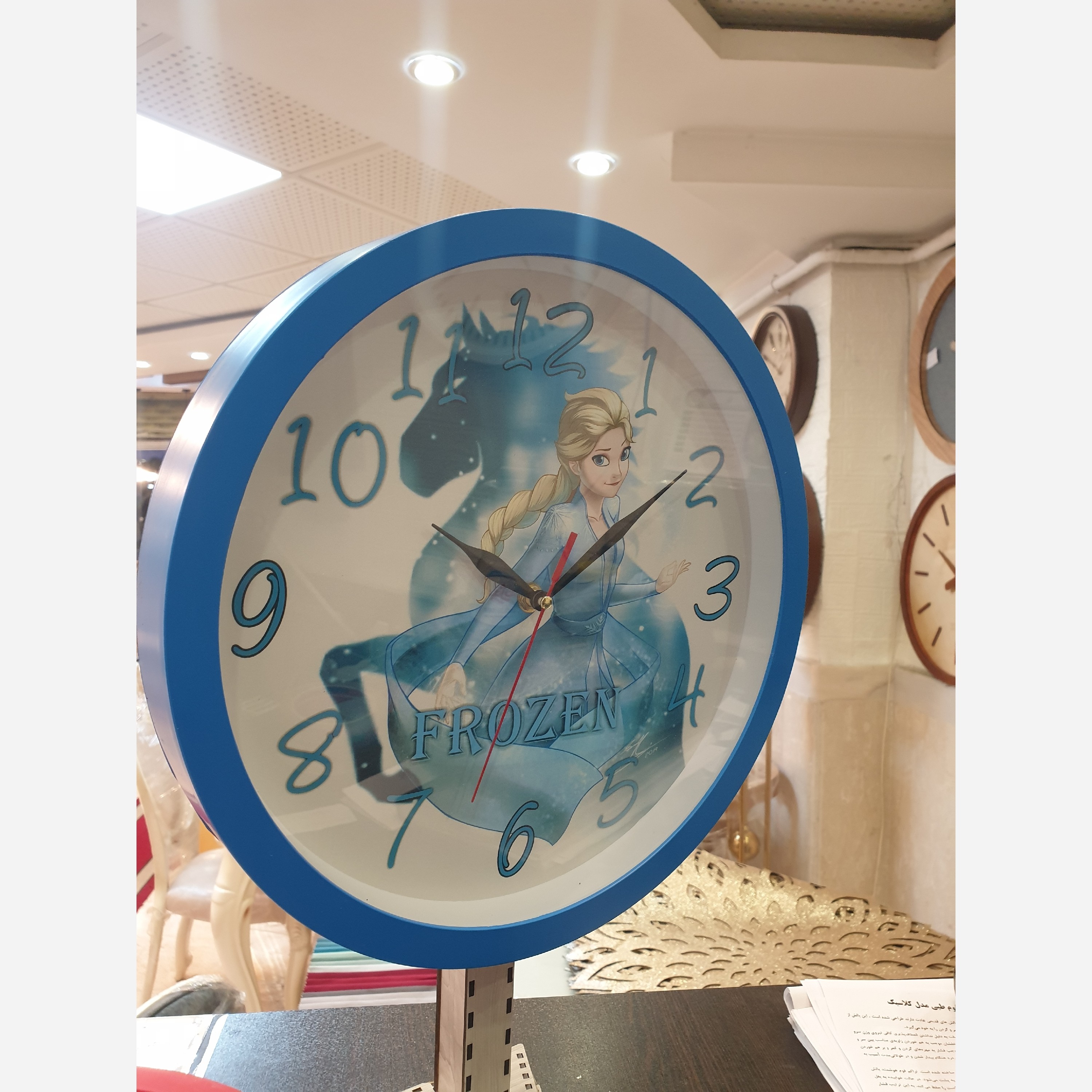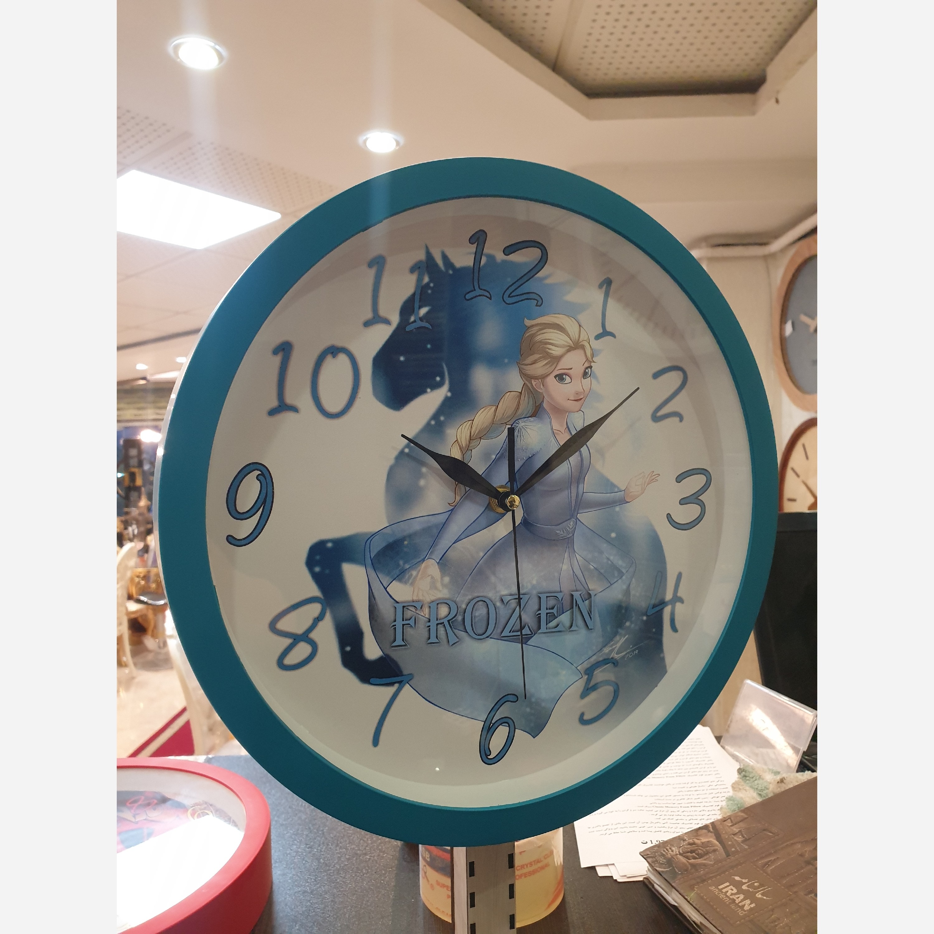 ساعت دیواری طرح دختر فروزن. روی ساعت شیشه سه میل دارد گارانتی یکسال موتور ساعت تفاوت این ساعت ها با ساعت های موجود در دیجی کالا کیفیت موتور ساعت و کیفیت مواد ساخته شده بدنه ساعت می باشد که از مواد اولیه درجه یک استفاده می شود صفحه این ساعت ها کاذ کلاسه 250 گرمی هست که باعث می شود بعد از گذشت مدت زیاد تغییر رنگ ندهد و صفحه ساعت باد نکند