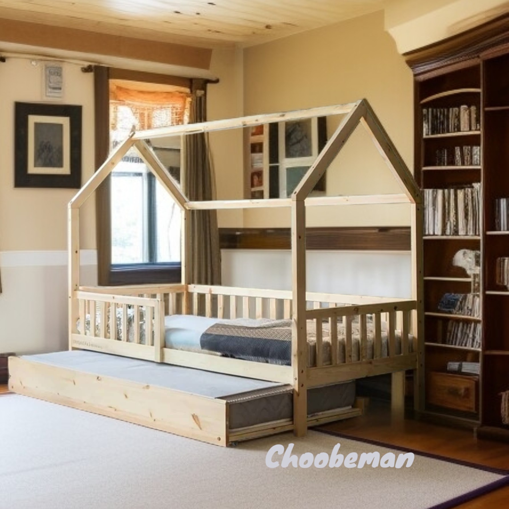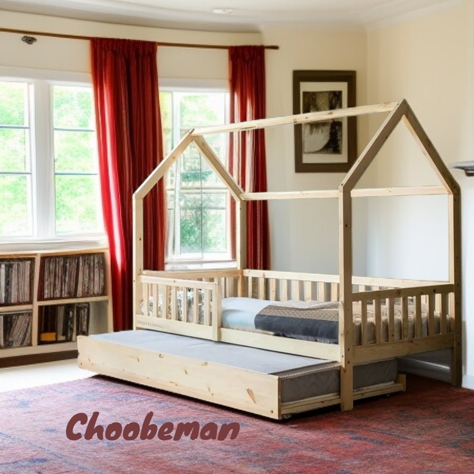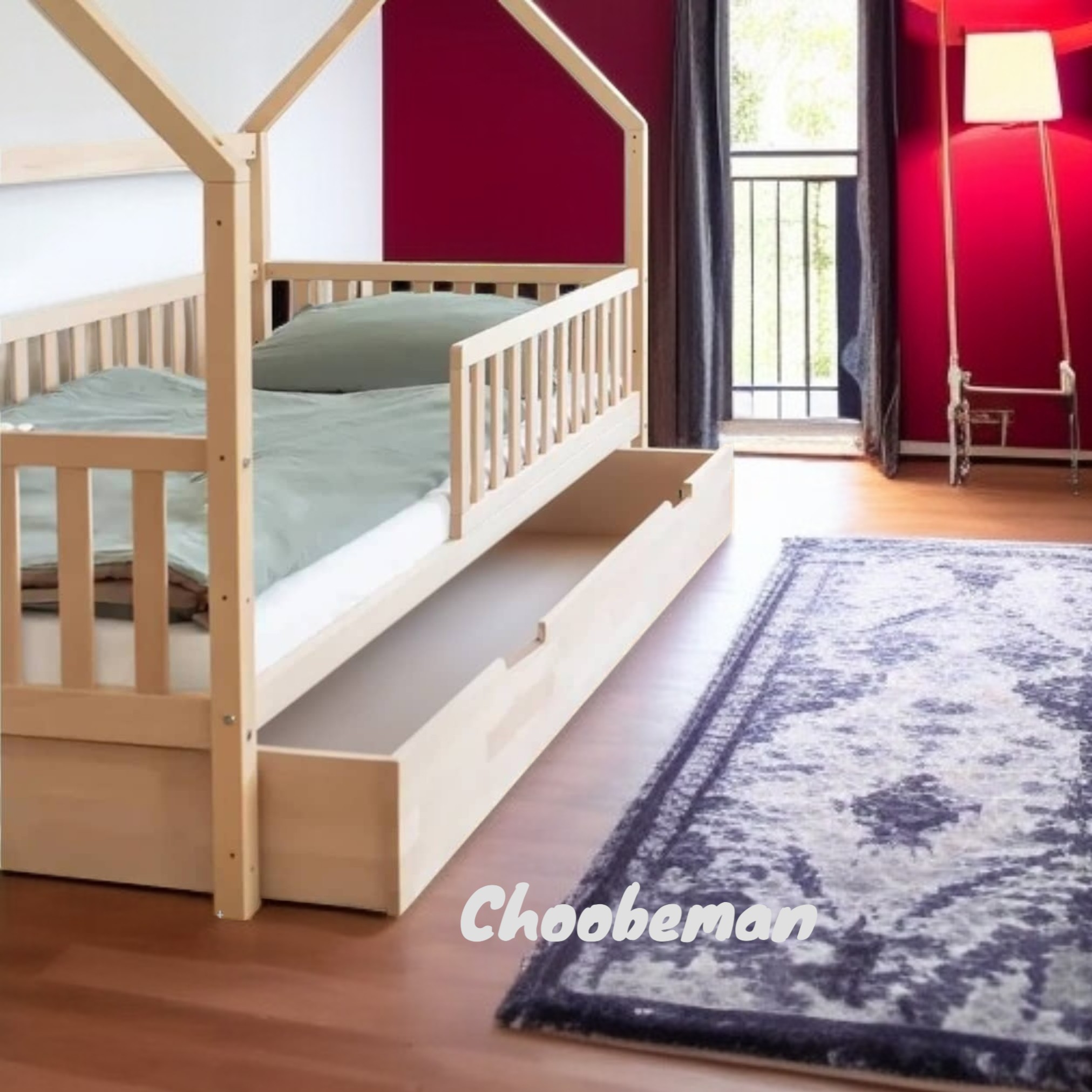 تخت خواب کلبه ای چوبی نوجوان کشو دار مناسب تشک 80-180 مبلمونسرا مدل 228933