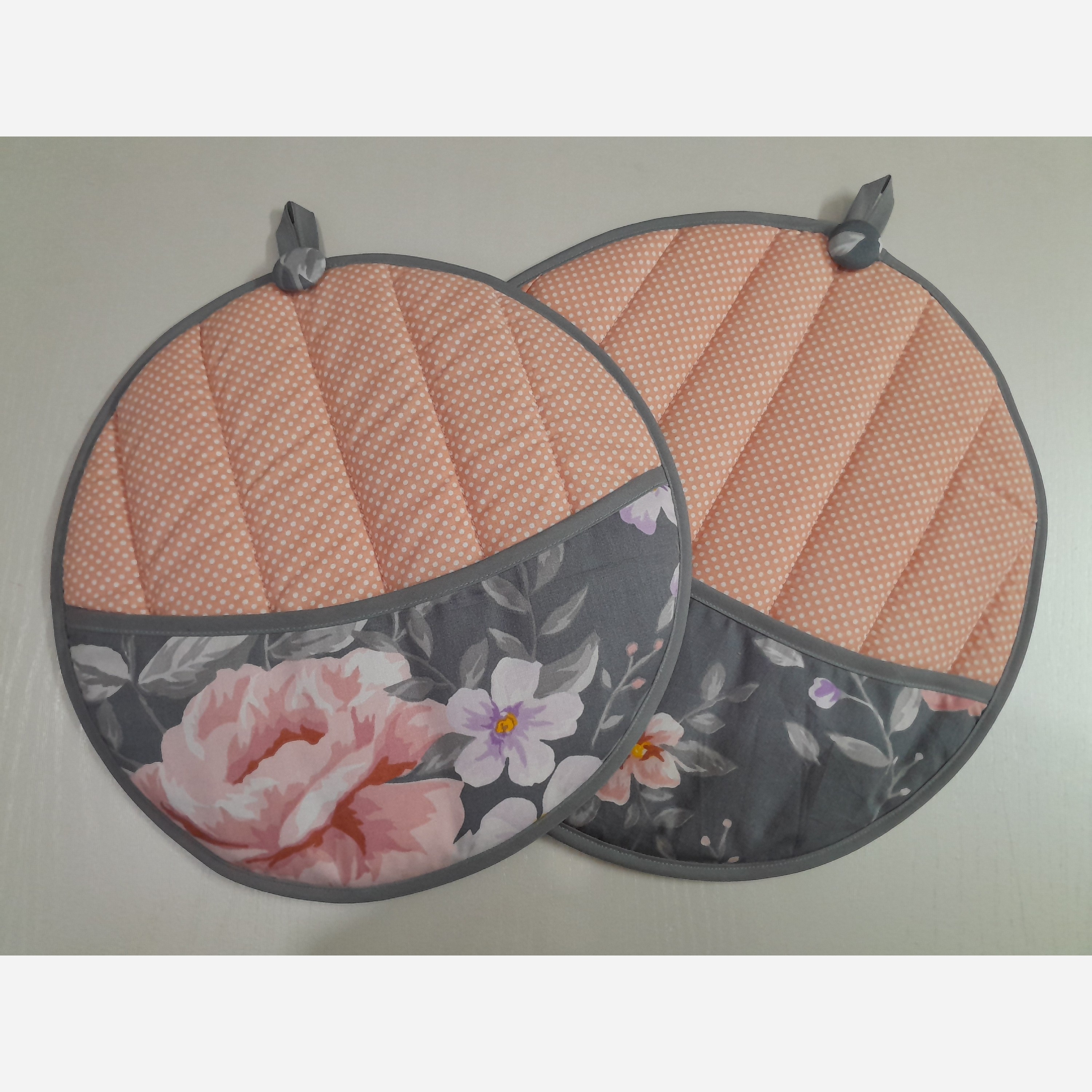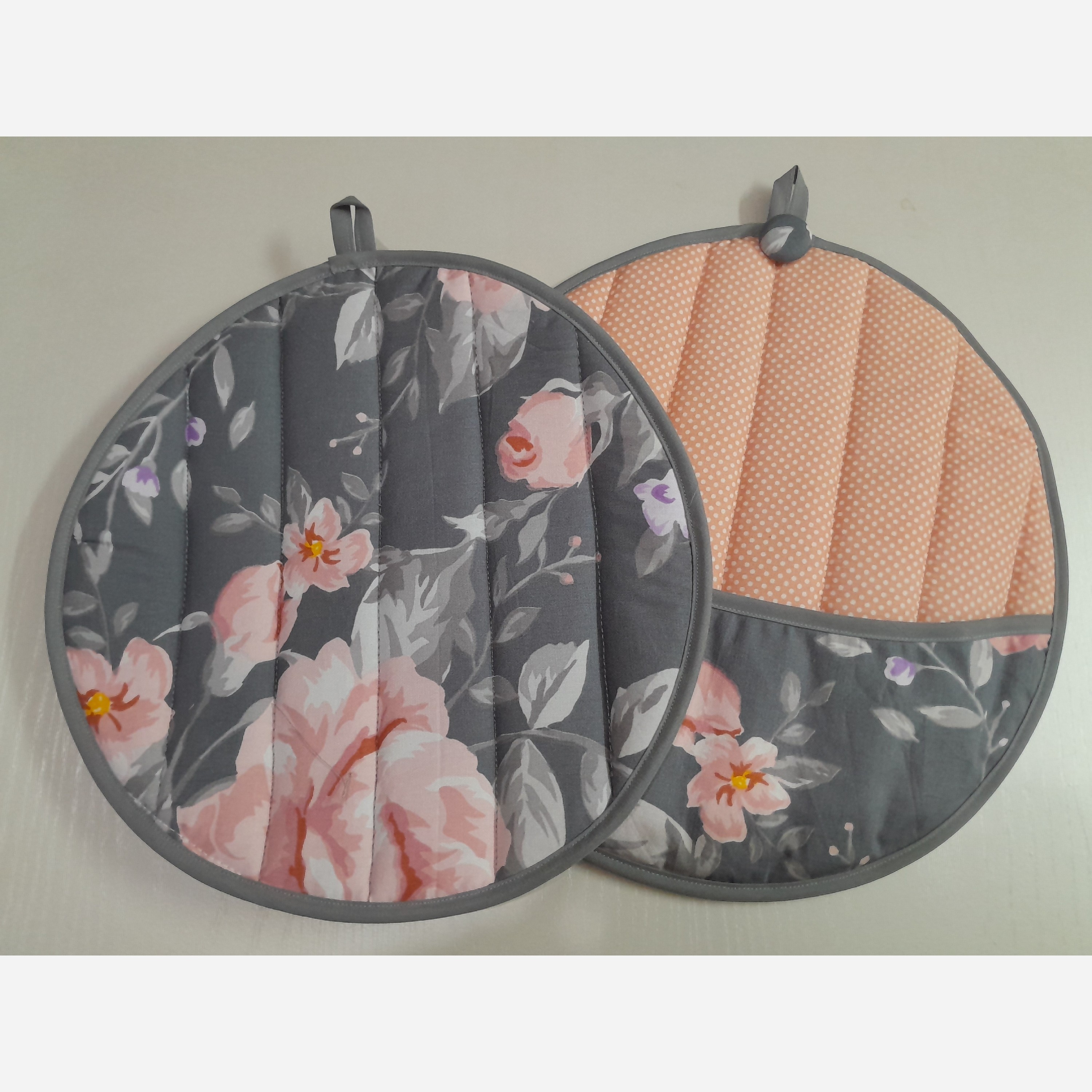پارچه مصرفی در این محصول از جنس کتان نخ می باشد که 100٪پنبه ای بوده وعلاوه بر مقاوم بودن در برابر حرارت قابلیت جذب بالای بخار آب را دارد و در بین دو لایه از این پارچه پشم شیشه فشرده استفاده شده که آنهم در جذب رطوبت تاثیر به سزایی دارد و این محصول با نوار اریب کتان تزئین شده که علاوه بر زیباتر شدن محصول در برابر حرارت نیز مقاوم می باشد. تجربه یک آشپزی دلپذیر را با محصولات تکمیل کنید.