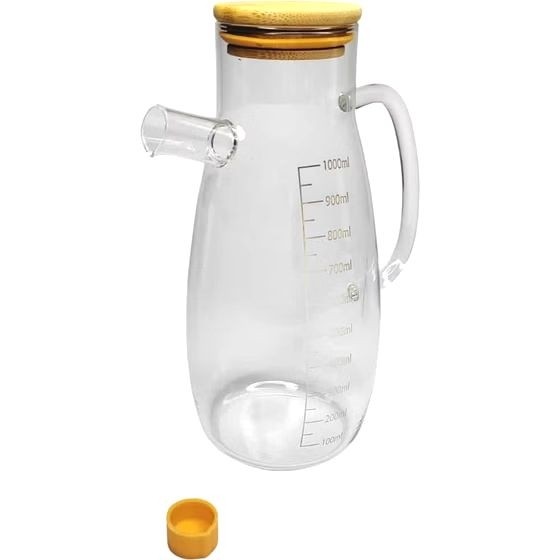 این روغن ریز جنس بدنش پیرکس و قابلیت استفاده روی حرارت رو هم داره دربش هم واشر داره و جنسش چوب بامبو هستش قابلیت شستشو در ماشین ظرفشویی رو هم داره مناسب برای انواع روغن،آبلیمو،آبغوره،انواع سس و... حجم یک لیتر ارتفاع 22 سانت قطر کف 8 سانت قطر دهانه 6 سانت وزن خالی 300 گرم وزن پر 1500 گرم