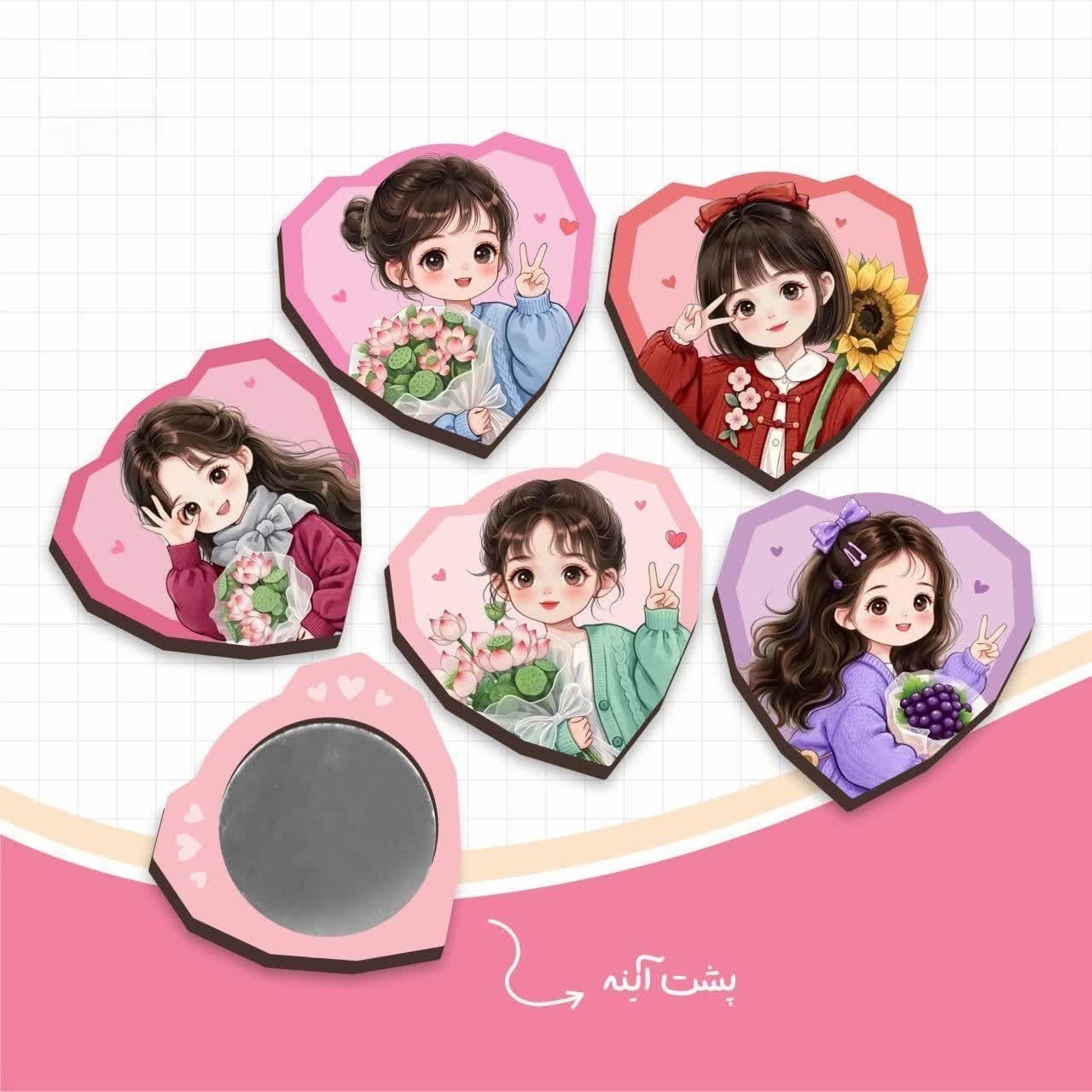 آینه چوبی جیبی طرح قلب دختر مبلمونسرا مدل 261819