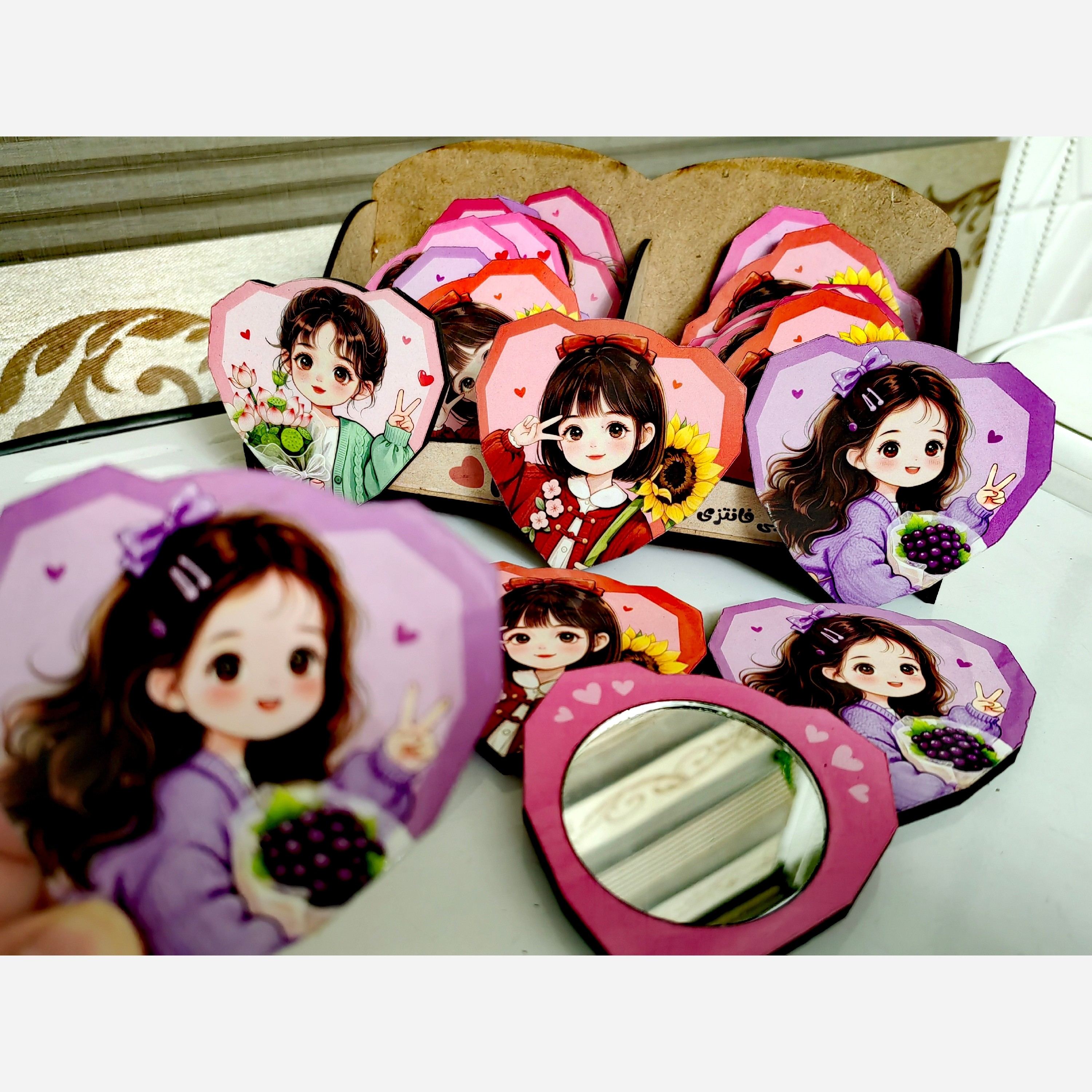 آینه چوبی جیبی طرح قلب دخترانه