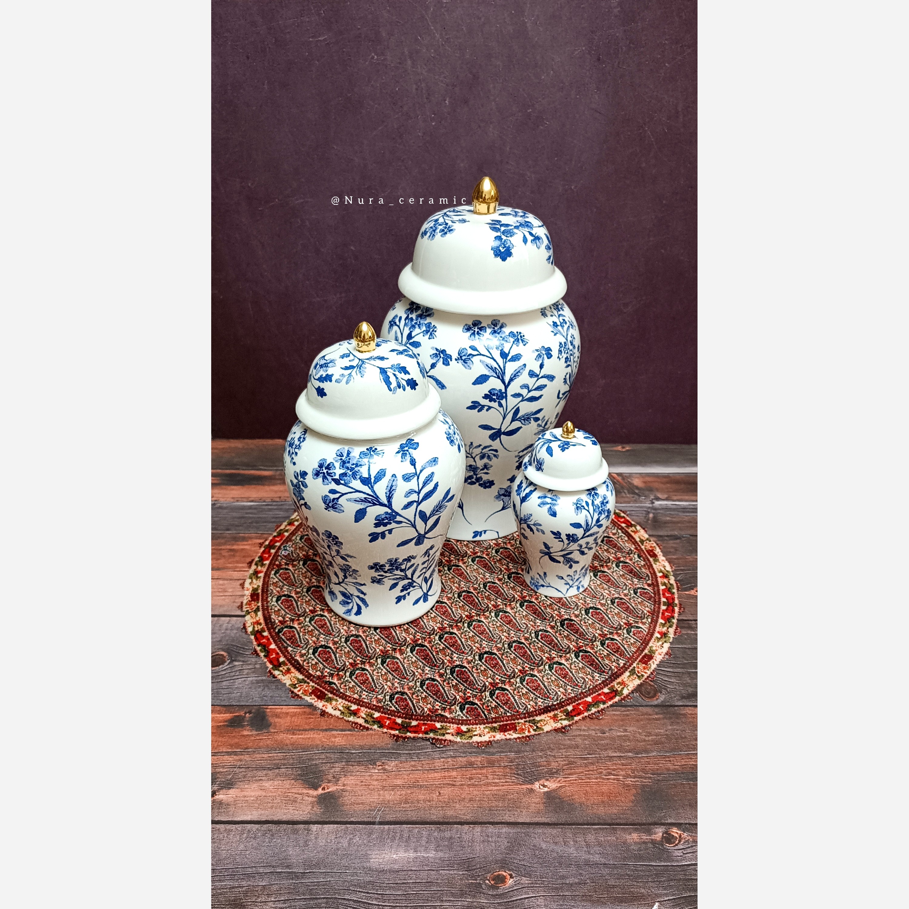 جینجرجار سرامیکی کاملاً دست ساز پخت شده با دمای بالای 1080 سه دور پخت شده تکنیک ترانسفر