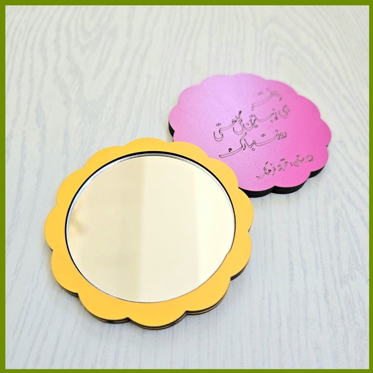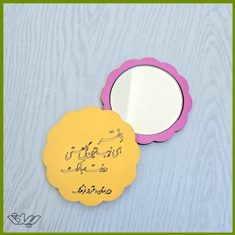 آینه جیبی چوبی سیلقا با طراحی خاص، مناسب هدیه روز دختر این آینهی جیبی فانتزی با طراحی گل مانند و جنس چوبی با کیفیت، هدیهای خاص و ماندگار برای روز دختر است. رنگبندی متنوع این محصول آن را برای سلیقههای مختلف مناسب کرده است. در پشت آینه، یک متن دلنشین با دستگاه لیزر حکاکی شده که حس خوب ارزشمندی را به گیرنده منتقل میکند. برای سفارش های عمده ، امکان حکاکی متن دلخواه شما نیز فراهم است. این آینه چوبی میتواند گزینهای عالی برای هدیههای سازمانی، مدرسهای، یا مراسمهای خاص باشد. ویژگیها: جنس: چوب سه میل روکش دار با کیفیت بالا ابعاد: سبک و قابل حمل 7٫5×7٫5 سانتیمتر جنس آینه: پلکسی نشکن امکان سفارشیسازی متن حکاکی برای سفارش های عمده امکان حکاکی اسم مدرسه در کنار متن مناسب برای روز دختر، یادبودها، و هدیههای تبلیغاتی توجه : ✳️برای سفارش متن دلخواه یا رنگ چوب می توانید از طریق گفت و گو با غرفه دار با ما در ارتباط باشید . ✳️در غیر اینصورت آینه ها با همین نمونه متن و در رنگ های متنوع خدمت شما ارسال خواهد شد