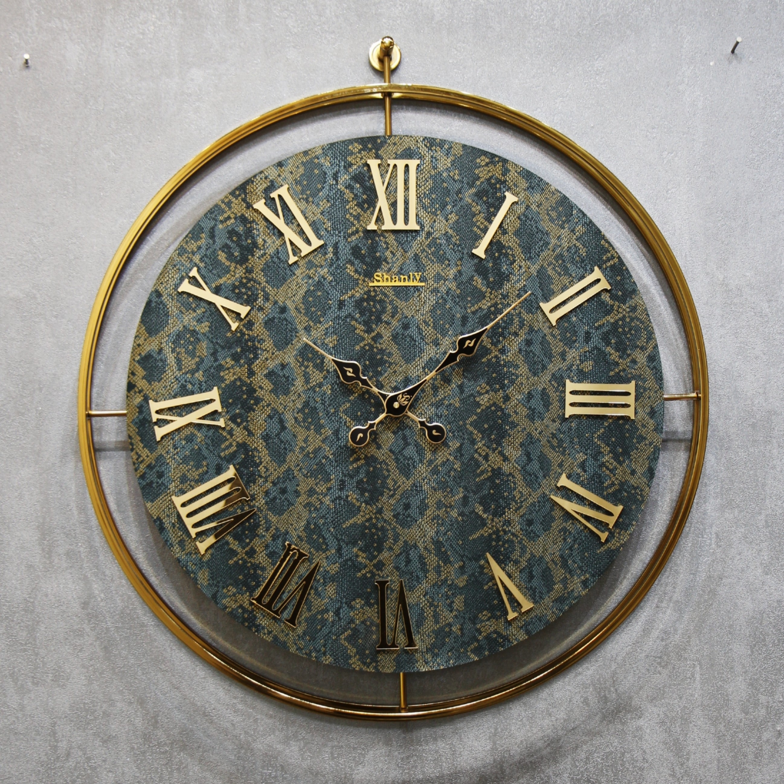 ساعت دیواری فلزی چرمی مدرن آبکاری طلایی مبلمونسرا مدل 238233