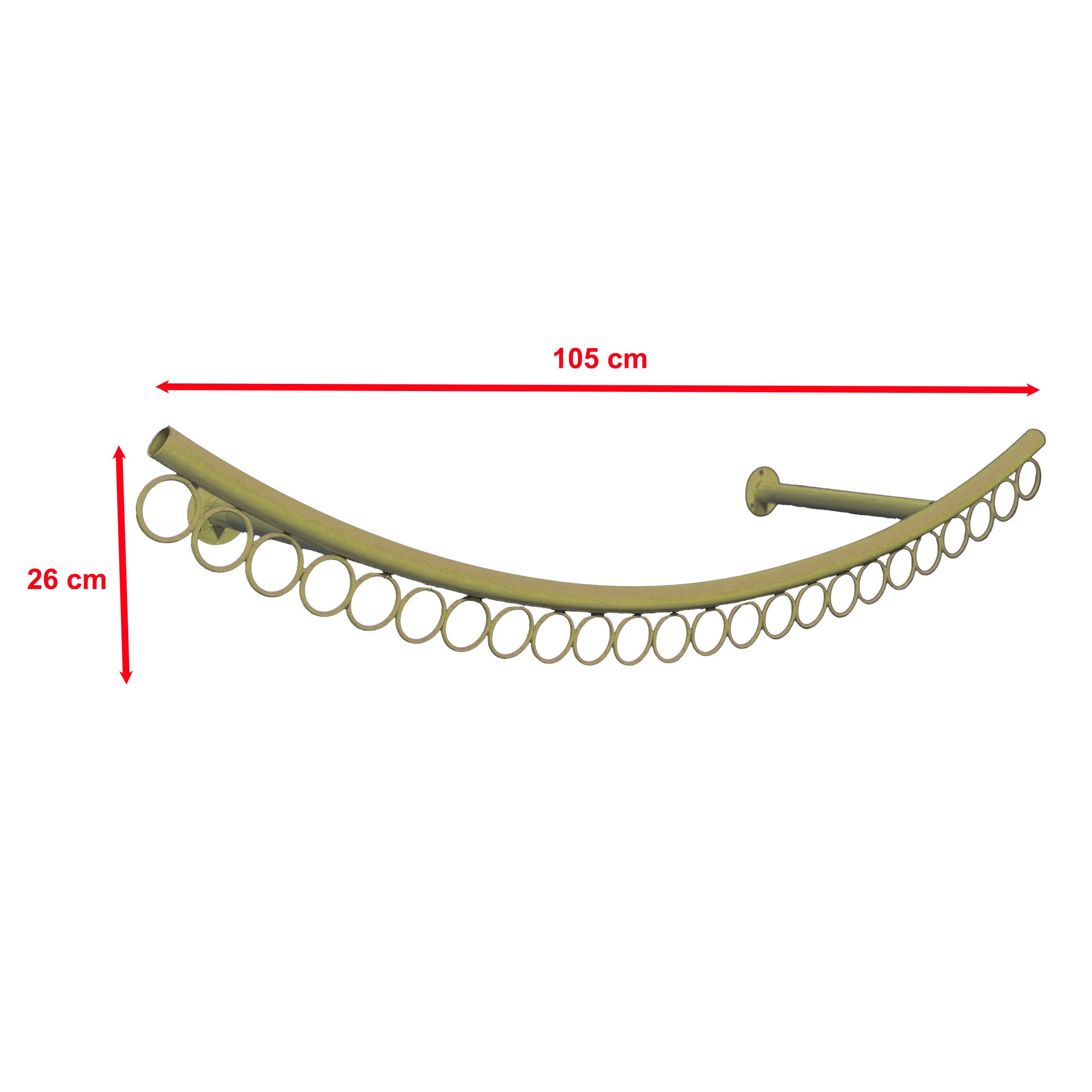 رگال طرح لبخند حلقه دار این رگال برای آویزان کردن چوبکار بسیار مناسب است. آن را بر روی دیوار نصب می کنید و از آن استفاده می کنید. از مزایای این رگال، بدون پایه بودن آن است. شما می توانید با این رگال طرح لبخند حلقه دار از فضای بالایی مغازه روی دیوار بیشترین بهره را ببرید. ابعاد آن 26 در 105 سانتیمتر می باشد. این رگال طرح لبخند حلقه دار در دو رنگ طلایی و مشکل عرضه می شود که شما می توانید هنگام خرید، رنگ مورد نظرتان را انتخاب نمایید. تعداد حلقه های این کار متغیر است و بسته به قطر حلقه ها، تعداد متفاوتی دارد.