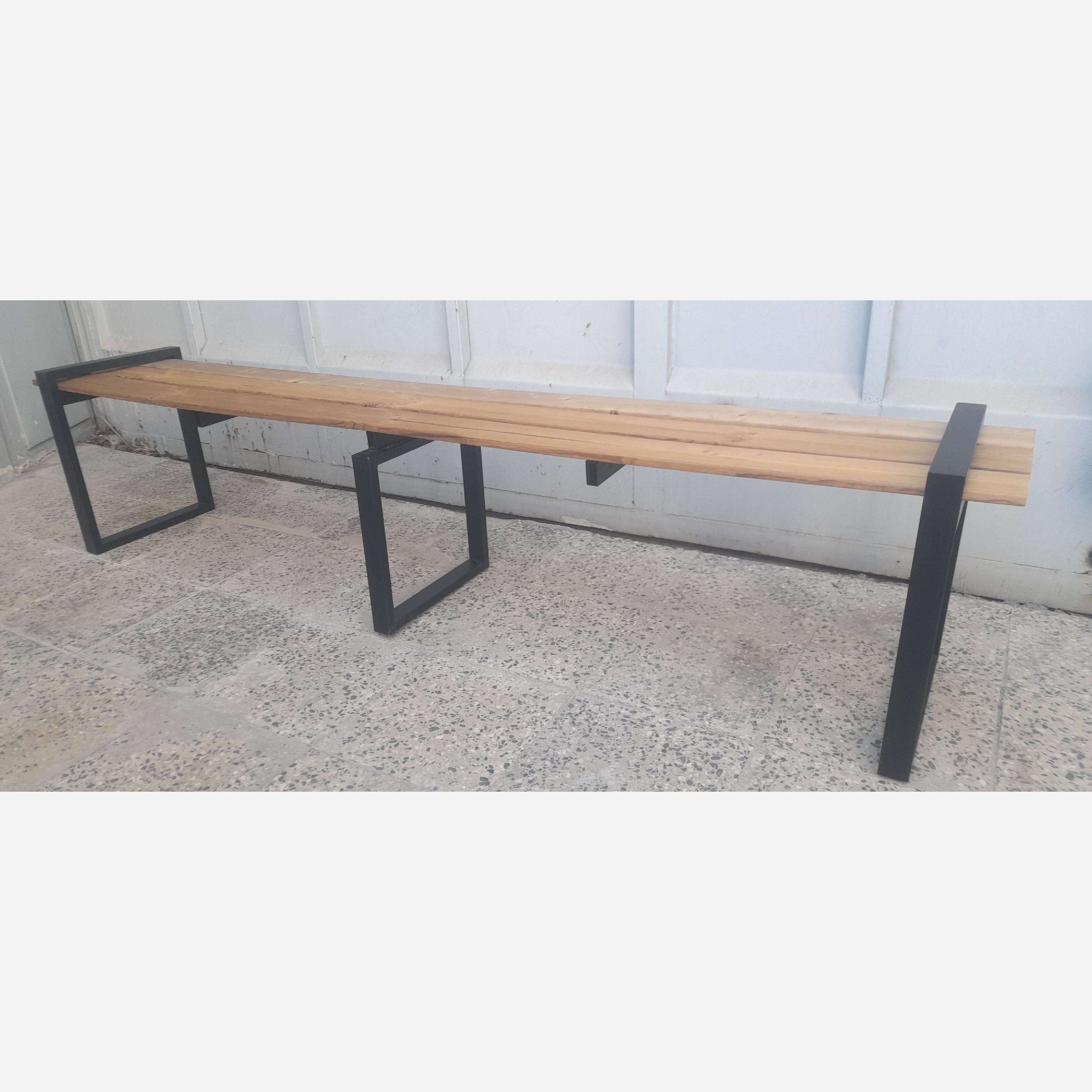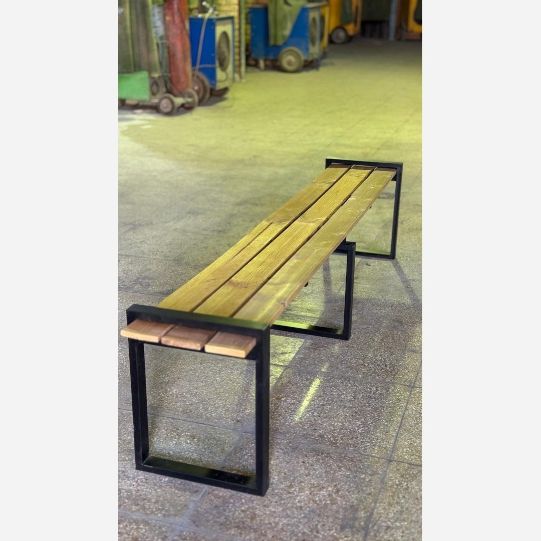 نیمکت چهار نفره چوب روس و پایه فلزی جهت معابر باغ محوطه ویلا و استخر حیاط و...