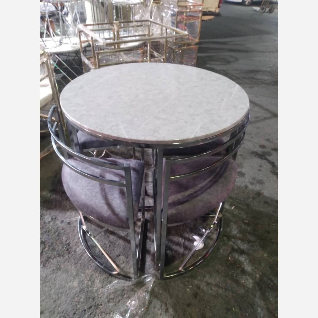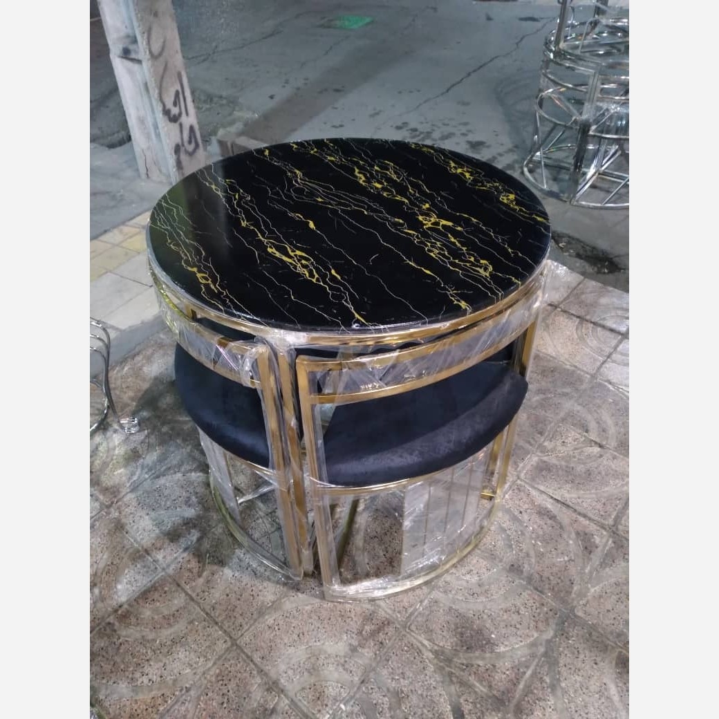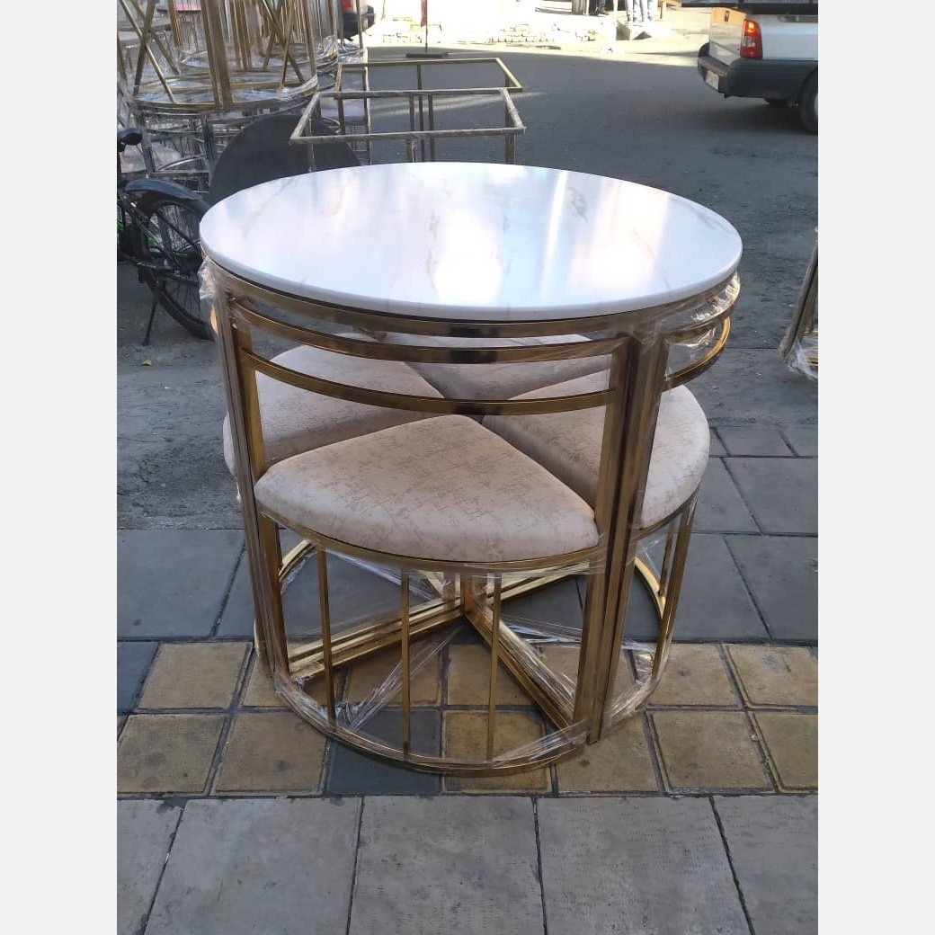 میز ناهار خوری کمجا دایره بهترین ابکاری جنس بدنه فلزی روکش صندلی پارچه ترک اصل روکش ام دی اف وکیوم