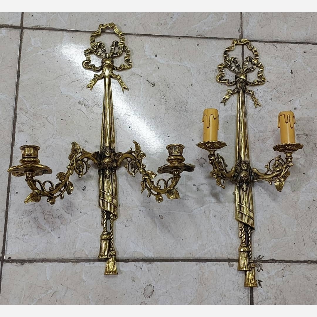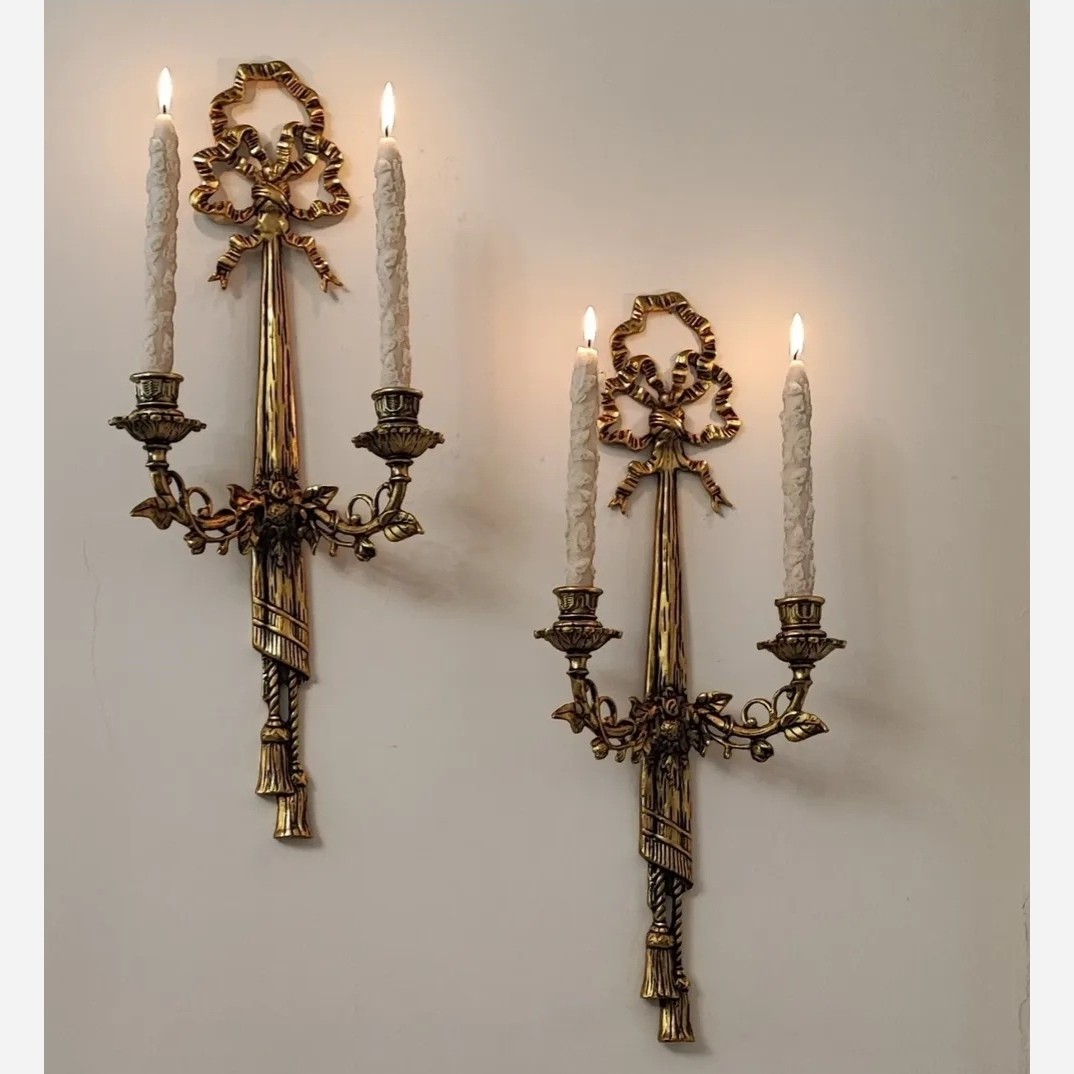 اپلیک شمعدان دیوار کوب جا شمعی دیواری شمعدانی دیوارکوب برنزی آنتیک پتینه برنز مبلمونسرا مدل 285061