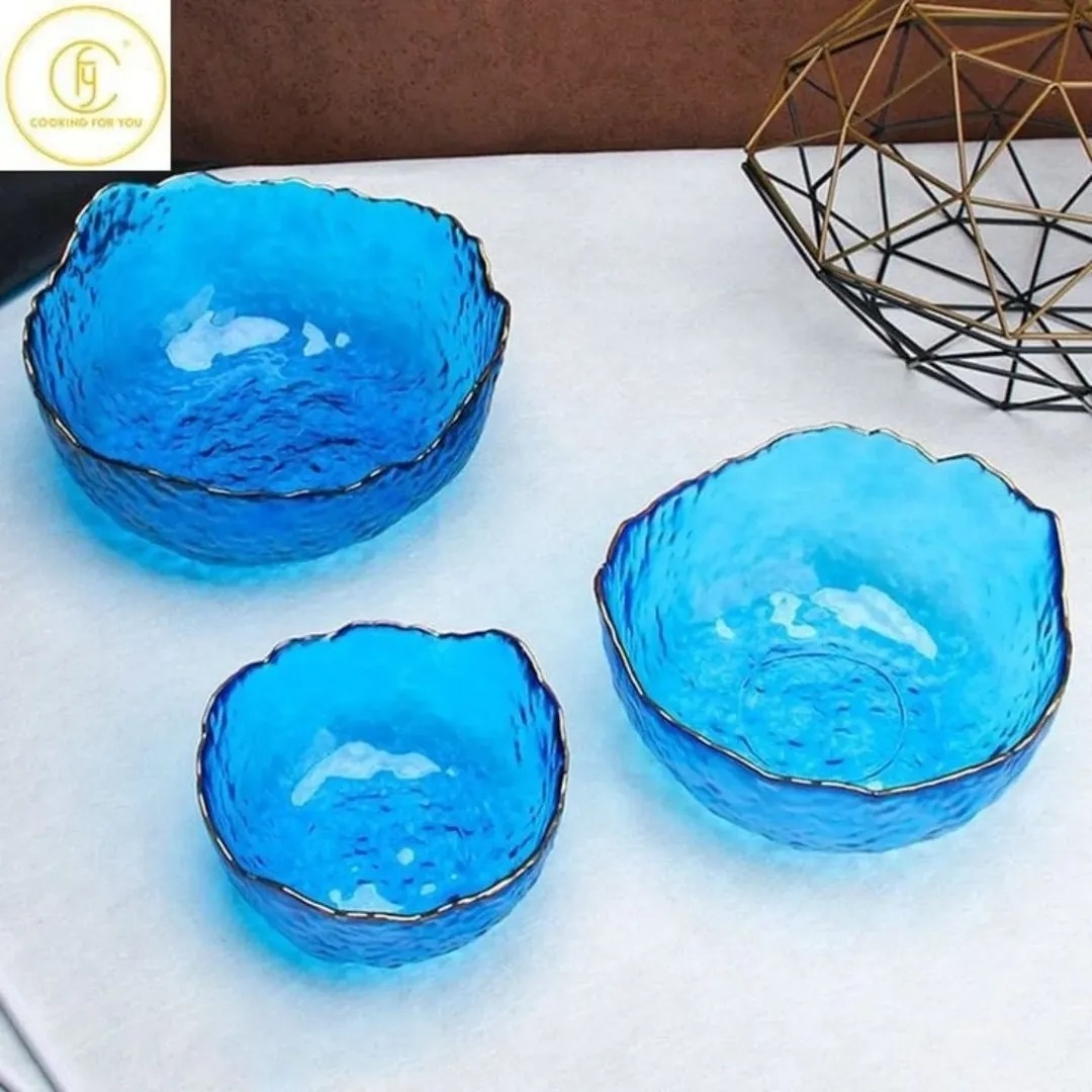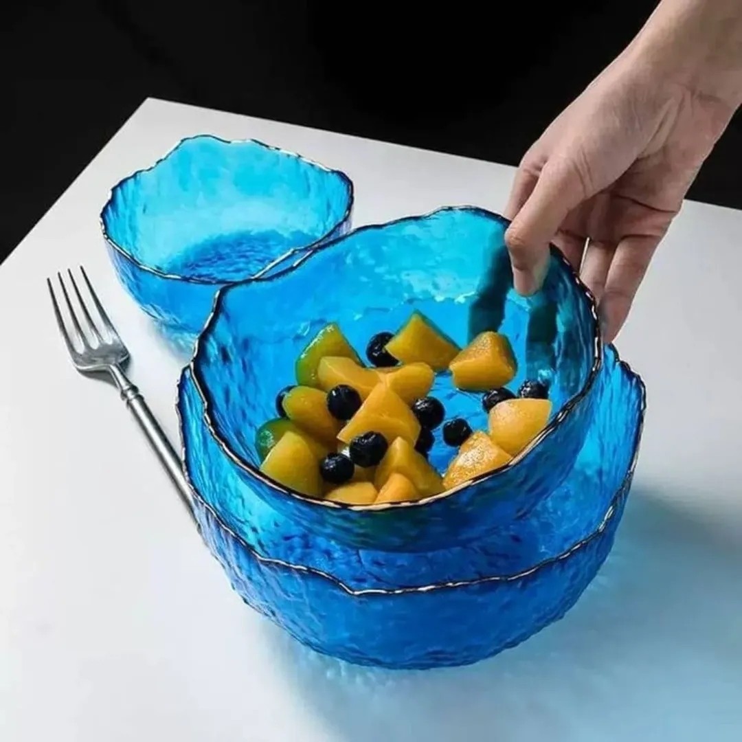 کاسه دفرمه 3 تایی لب طلای آبی مبلمونسرا مدل 271791