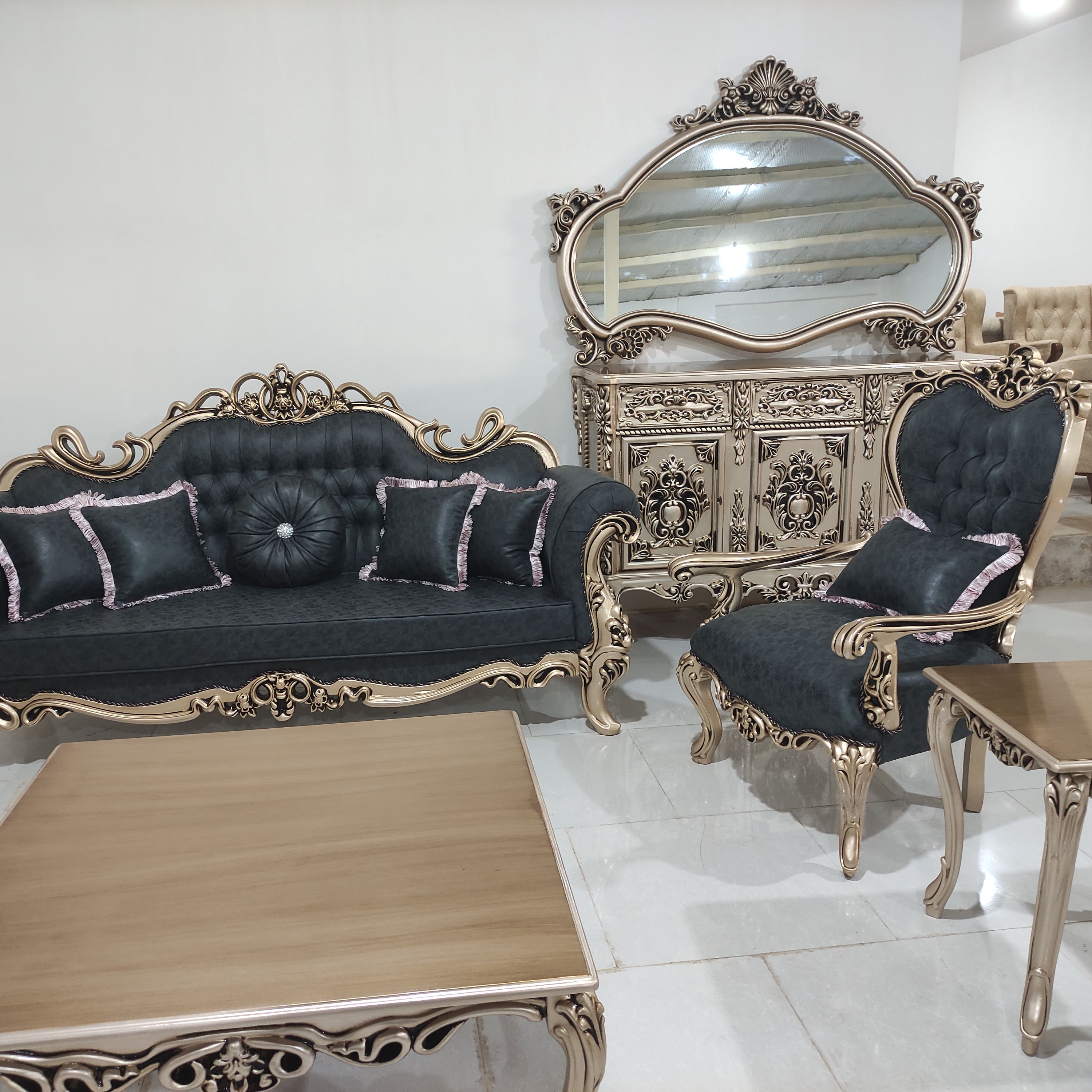 کلاسیک نه نفره افسون از پرفروشترین محصولات این مجموعه میباشد با چوب گردو و جنگی راش ساخته شده است و دارای سه میز جلوم
