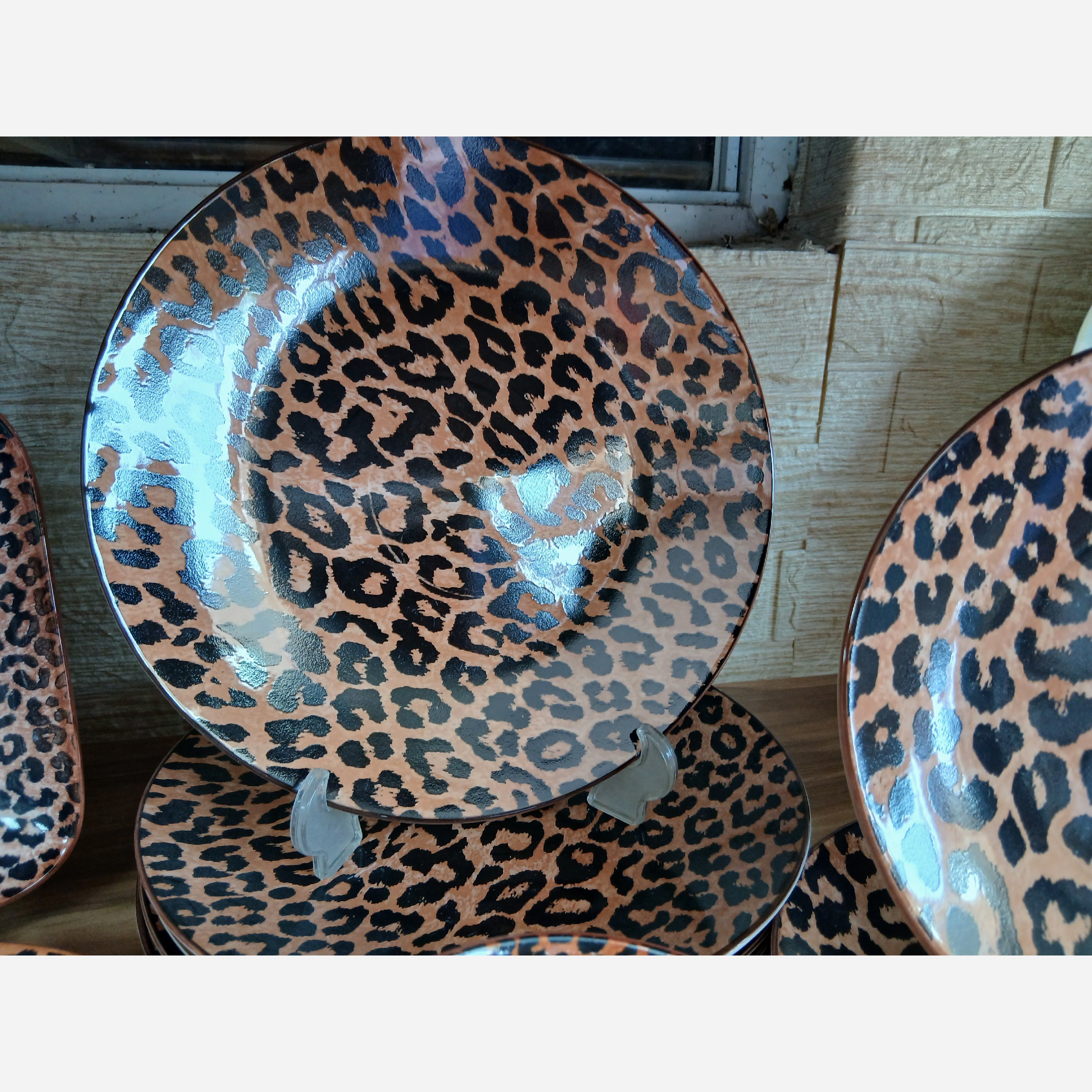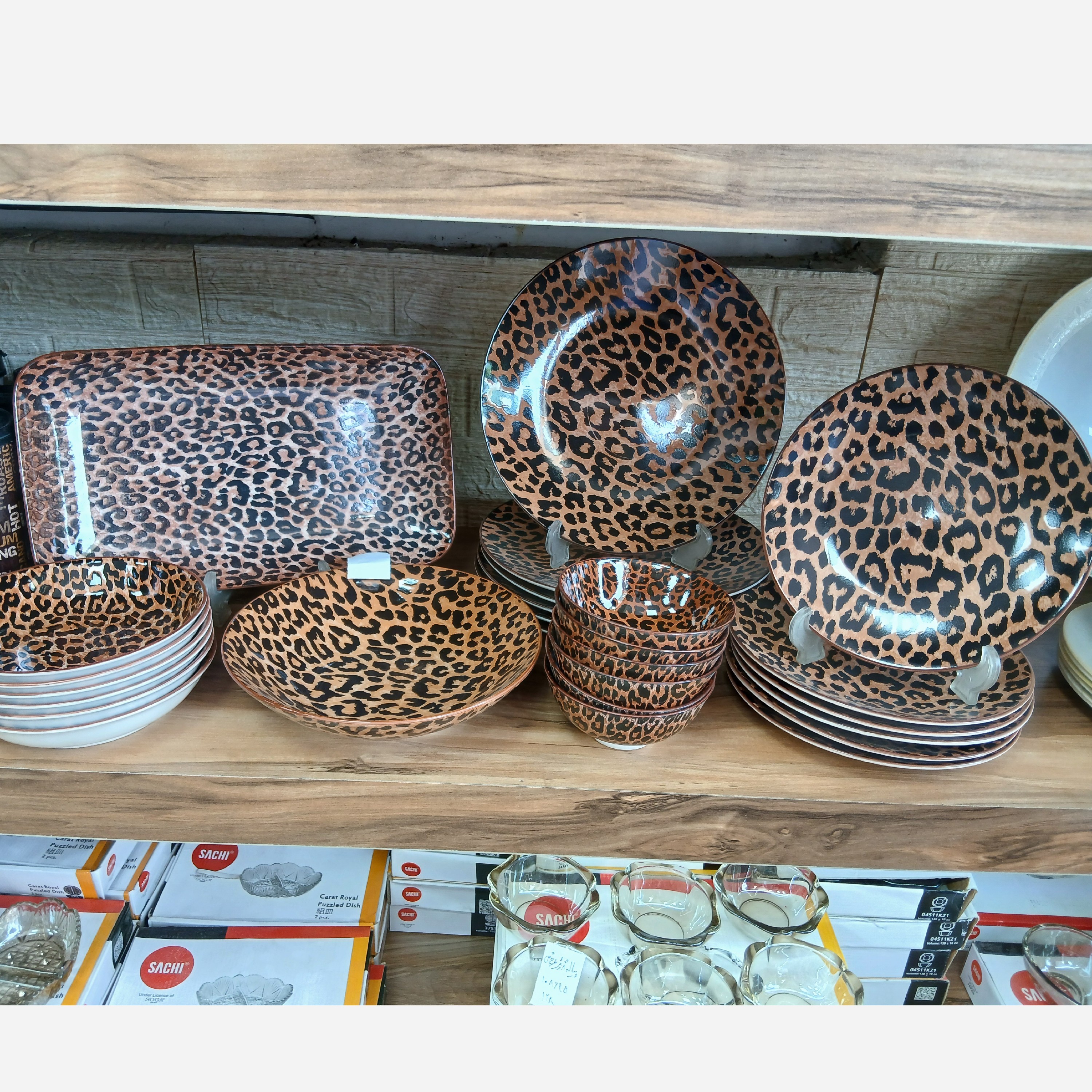 سرویس غذا خوری 26 پارچه چینی طرح پلنگی شامل بشقاب پلو خوری و بشقاب میوه و پیاله ماست و بشقاب نیم گود و یک عدد دیس و کاسه مبلمونسرا مدل 287860