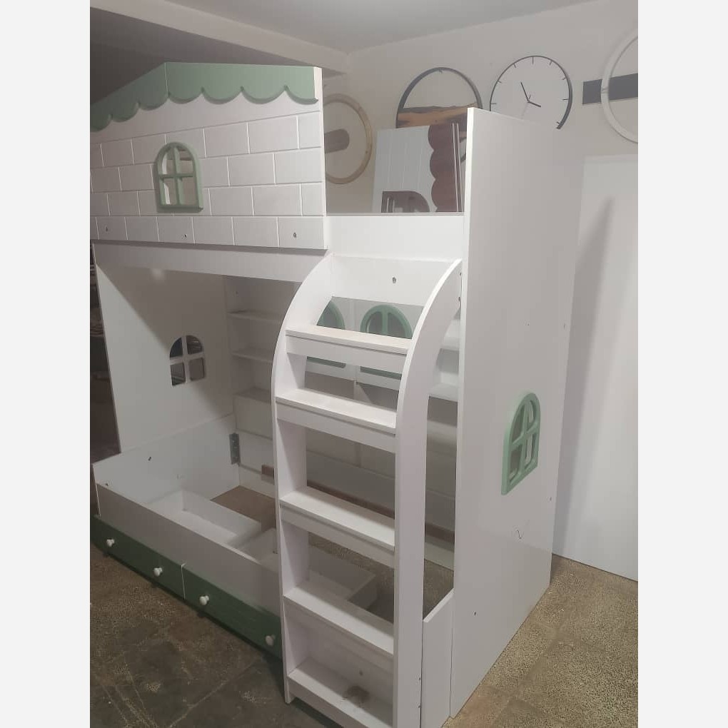 تخت دوطبقه پله نردبانی آماده تحویل سفیدسبز پسته ایی تمام ام دی اف