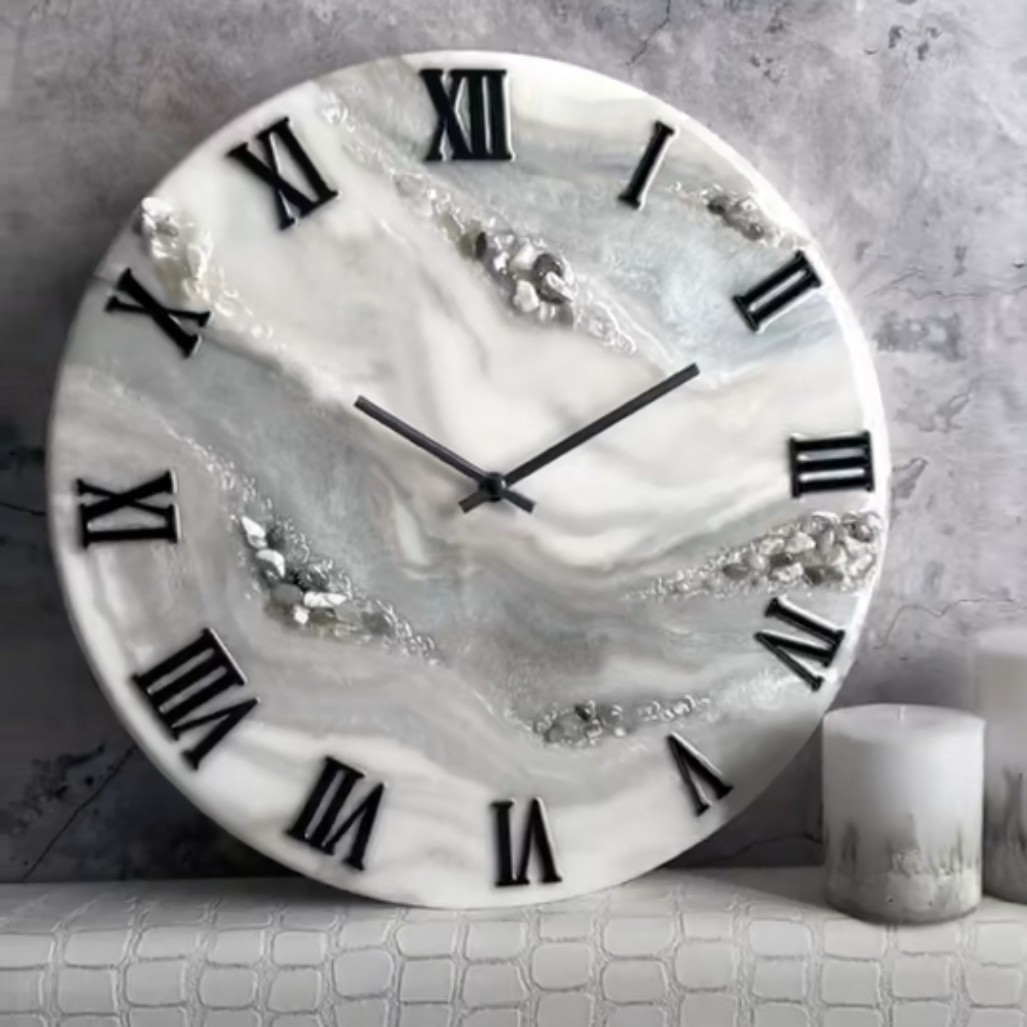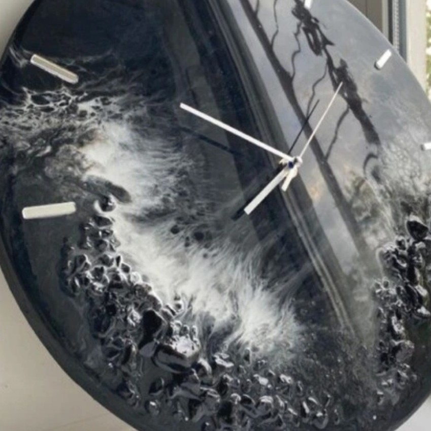 ساعت رزینی براق شیک جدید کریستال مشکی سفید مدرن مبلمونسرا مدل 240095