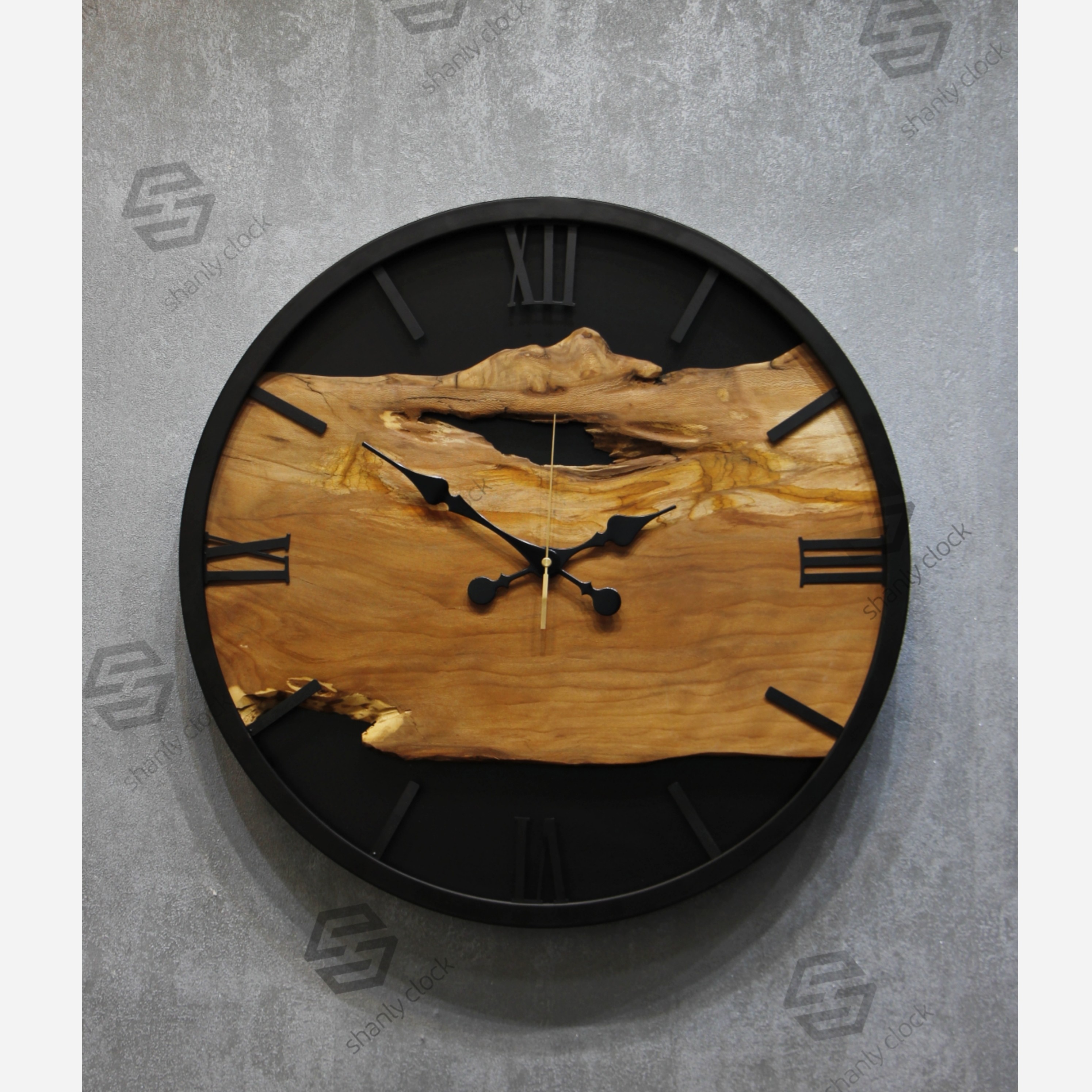 ساعت دیواری فلزی چوبی طرح روستیک مشکی کد 2 مبلمونسرا مدل 238235