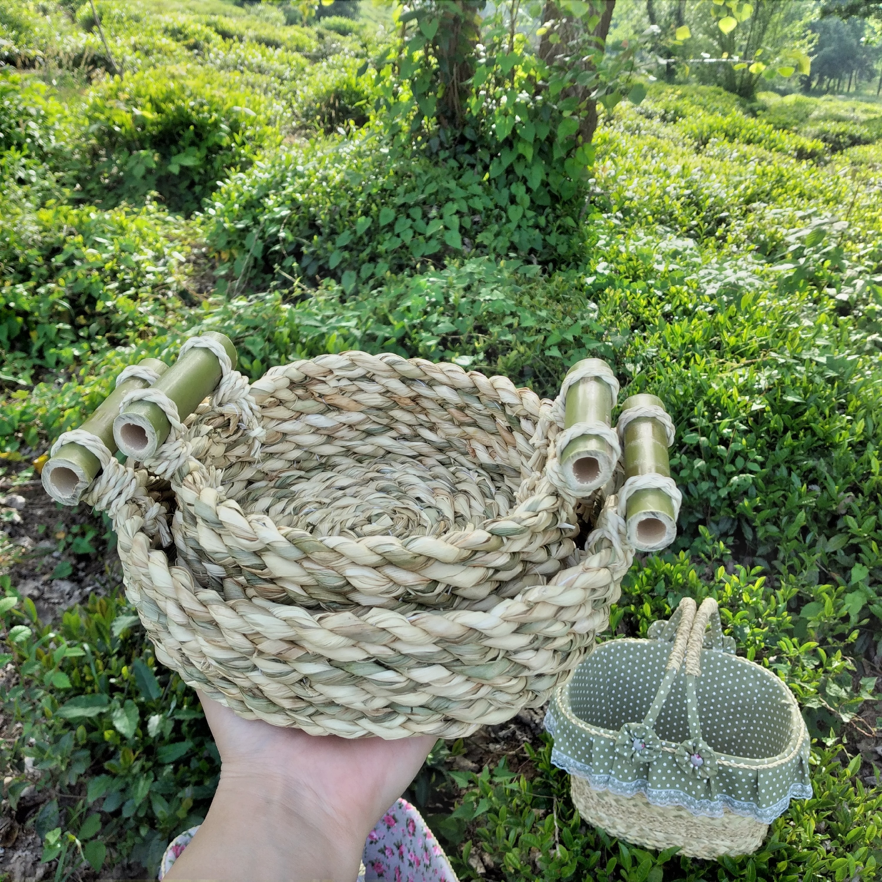 سبد دوتیکه پذیرایی دسته بامبو حصیری مبلمونسرا مدل 275059