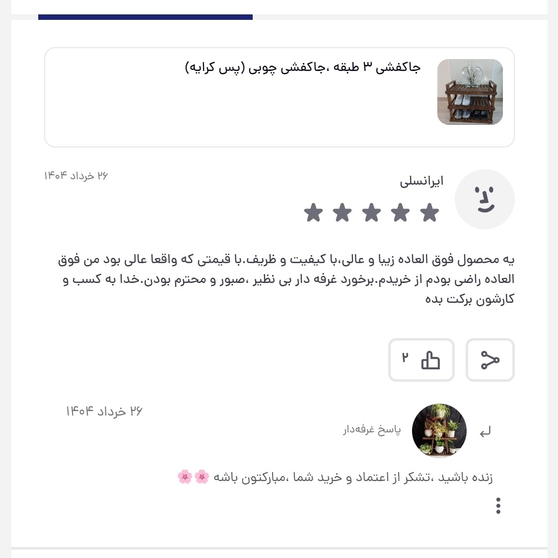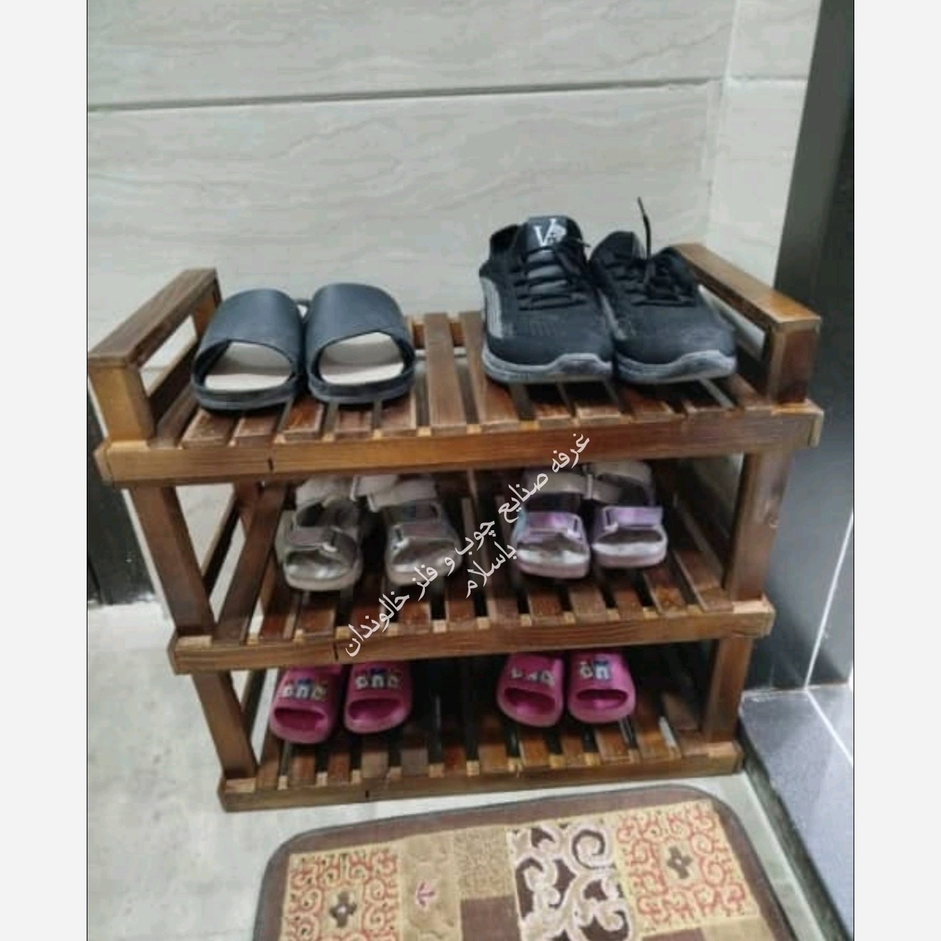 جاکفشی 3 طبقه مونتاژ شده با چسب و میخ رنگ شاپان و روغن جلا آبگریز و مقاوم در برابر آب