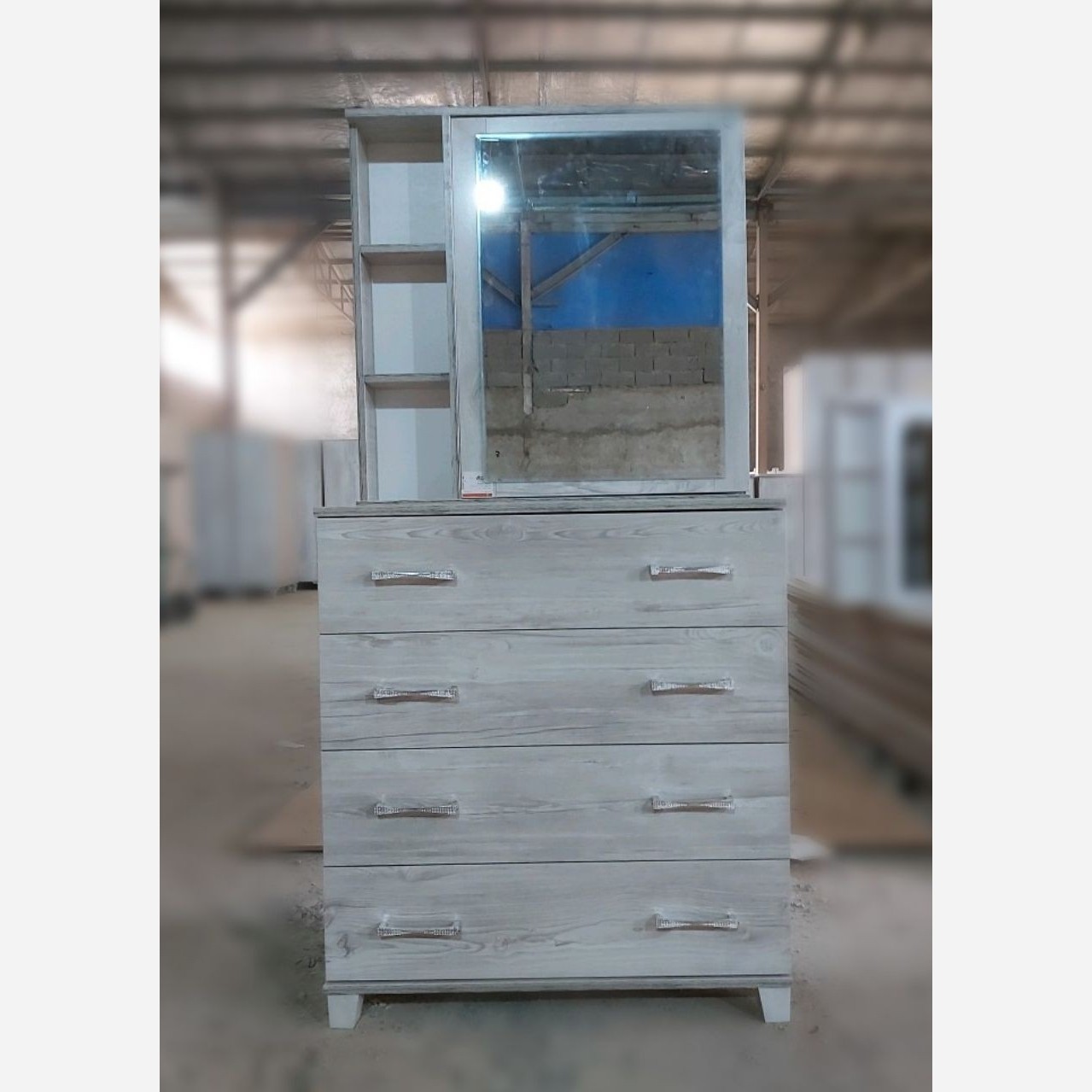 میز آرایش 4کشو رنگ کاج آینه ریلی پشت آینه طبقه بندی شده جای لوازم آرایش بغل آینه باکس بندی شده جای دکوری ابعادصفحه دراور 47×80 عمق هر کشو 14 سانت ارتفاع 90 جنس mdf