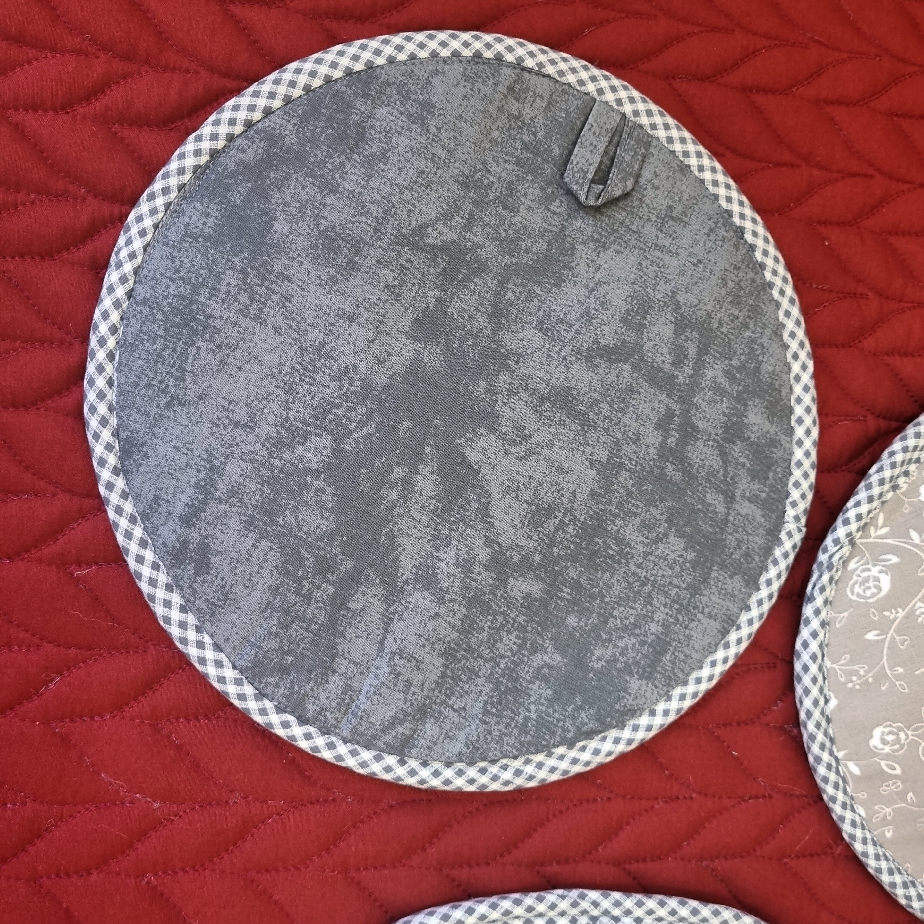 سه عدد دمکنی با قطر 23 و 25و 29 از جنس کتان نخ ترک درجه یک مقاوم در برابر حرارت و شستشو قابل سفارش به صورت سرویس کامل با رنگ و طرح دلخواه شما. با عشق دوخته میشه تا به شادی و آرامش استفاده کنید هنرمون رو به آشپزخانه شما هدیه می دهیم