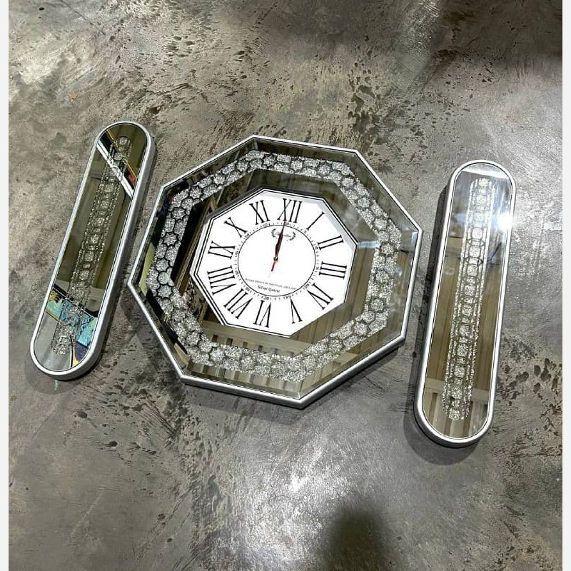 ساعت دیواری هشت ضلعی آینه ای اکریلی آنتیک و مدرن همراه با گوشواره امکان خرید بدون گوشواره در سه رنگ نقره ای ،طلایی،برنز سایز 60 موتور روانگرد و دو سال ضمانت موتور مستقیم از تولیدی ارسال به سراسر کشور فروش به صورت عمده و تک