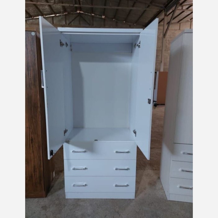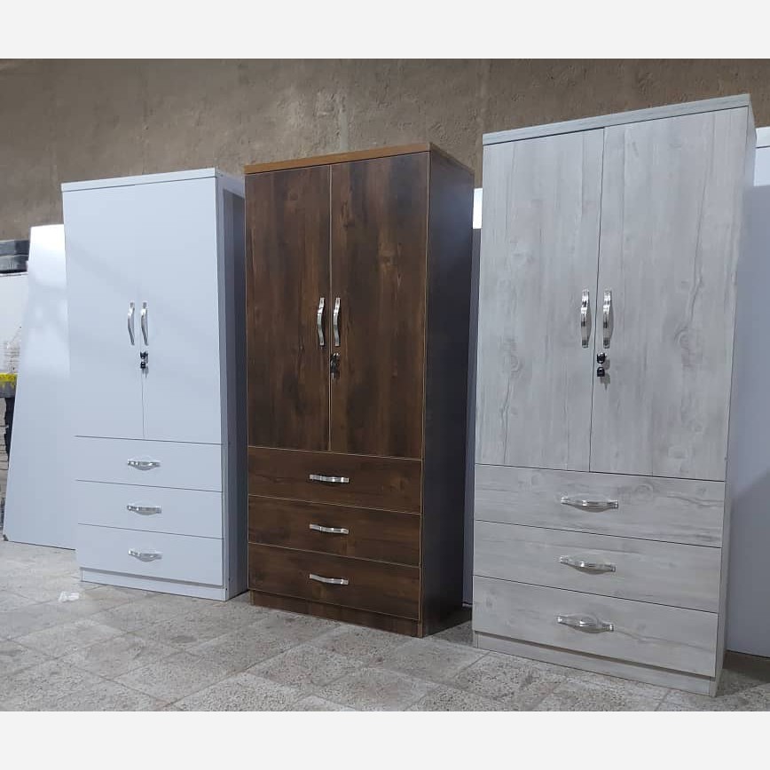 کمد لباس دو درب 3کشو نظم دهنده لباس و به همراه رگال لباس جنس mdf وکیوم ساده ابعاد کمد لباس 47×80 ارتفاع180 عمق داخل کمد 43 عمق هر کشو 14سانت می باشد