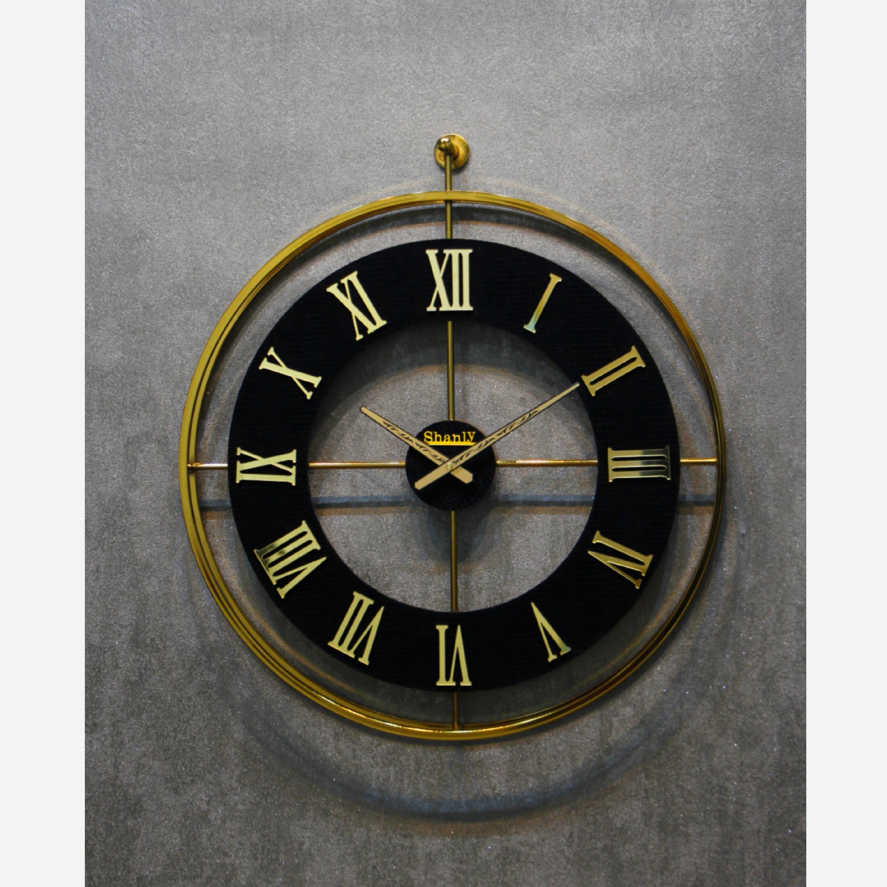 ساعت دیواری فلزی چرمی آبکاری رنگ مشکی مبلمونسرا مدل 238885