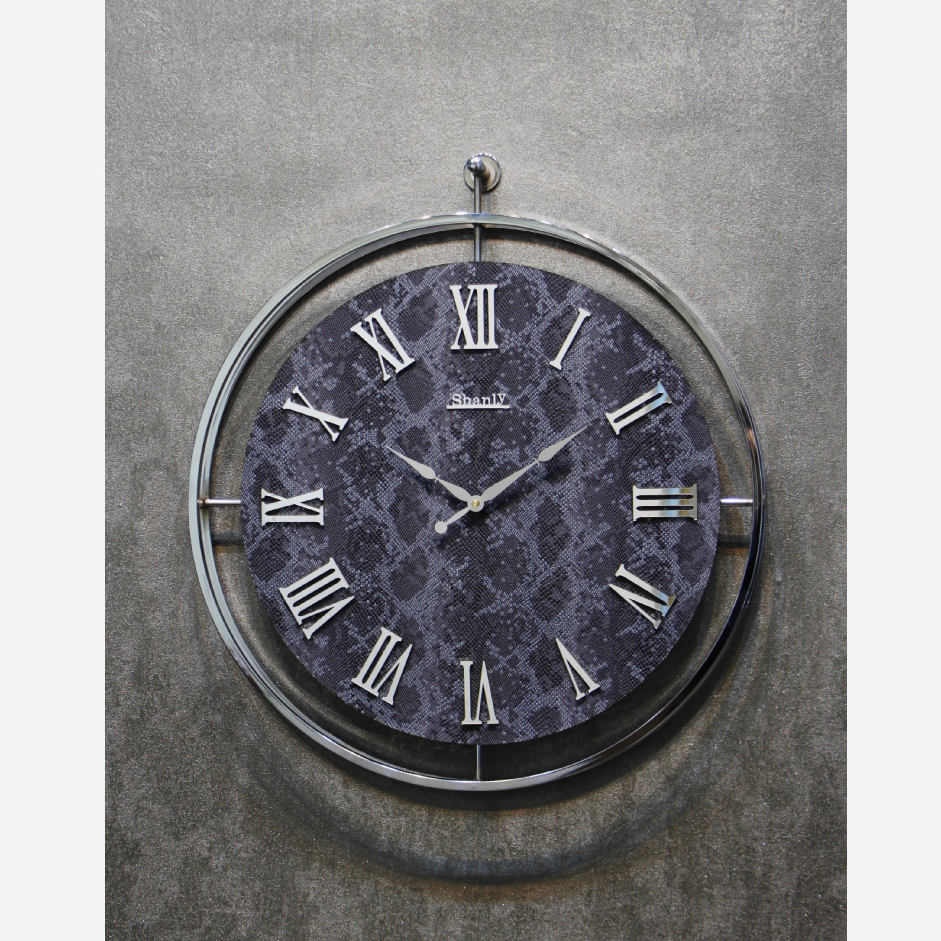 ساعت دیواری فلزی چرمی آبکاری نقره ای مبلمونسرا مدل 238895