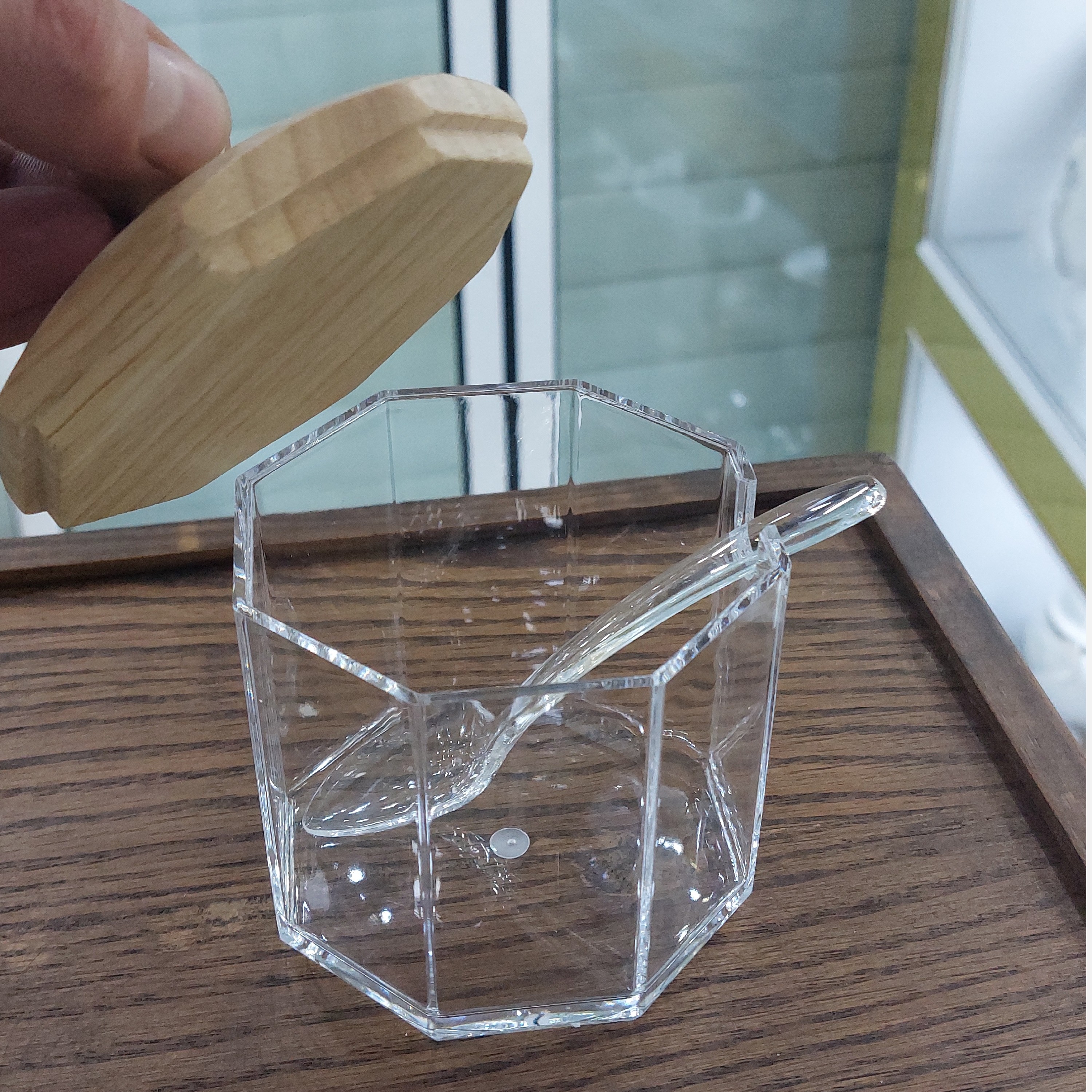 عسل و مرباخوری 6 گوش اکلرولیک برند شنگیا و ساخت کشور چین است به همراه 1 قاشق اکلرولیک ،درب این مدل چوبی میباشد و جنس چوب آن بامبوست، این برند یکی بهترین ها لوازم اشپزخانه محسوب میشه .