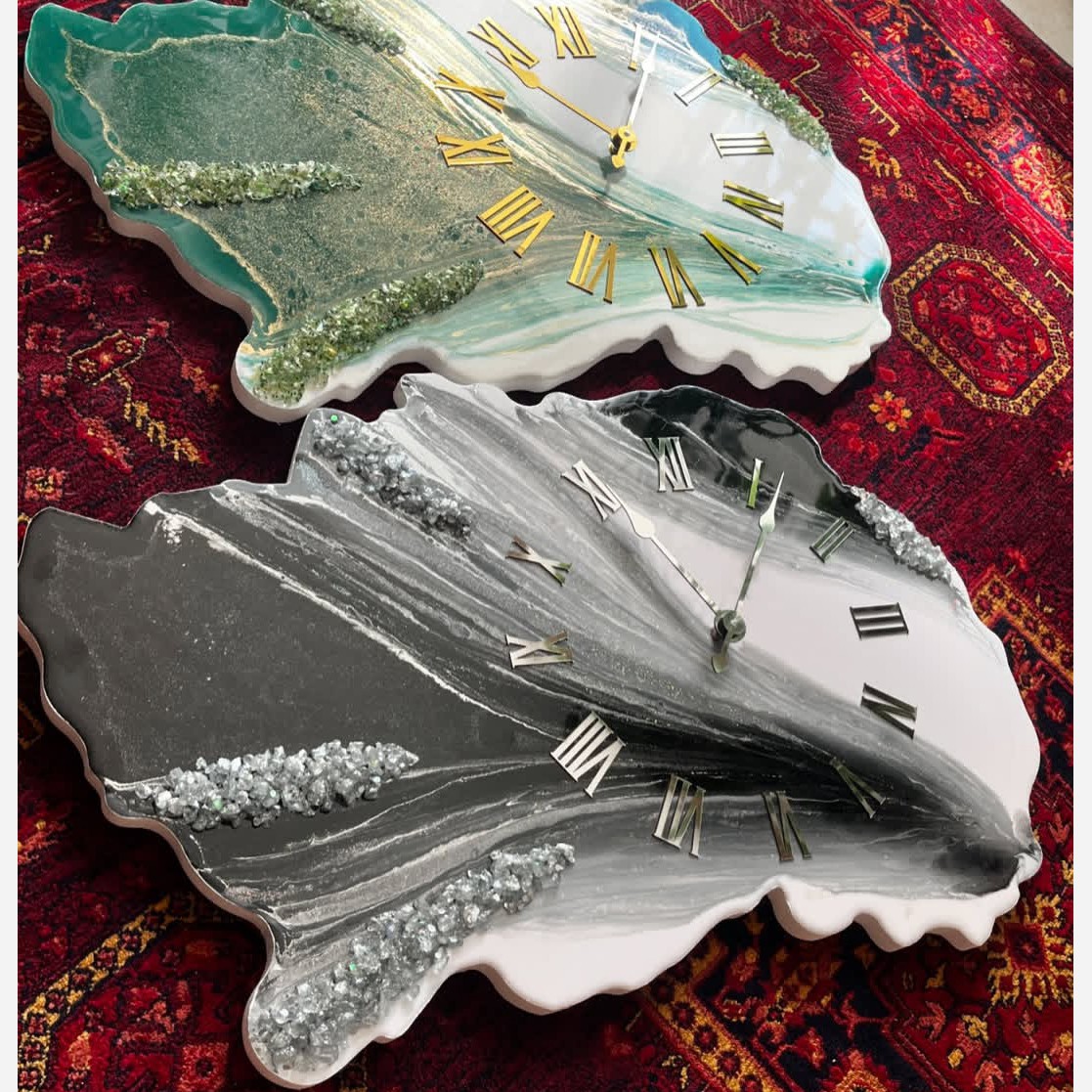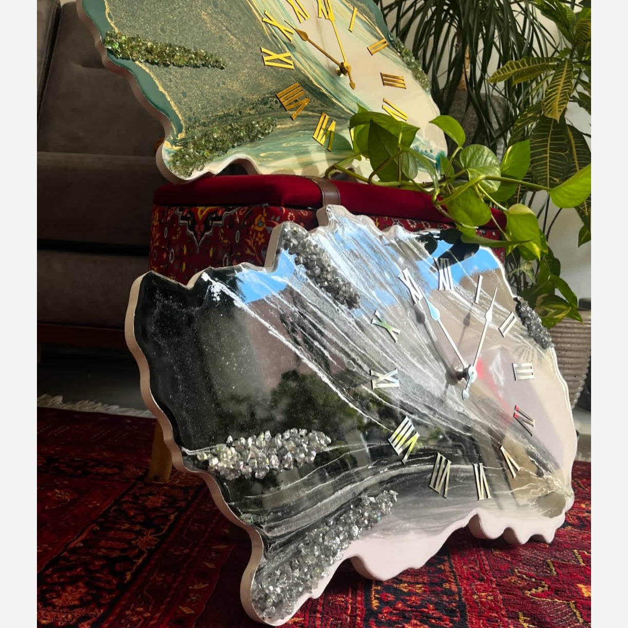 ساعت دیواری رزینی طرح دفرمه یک تکه .سایز60سانت ارتفاع حدود40قابل اجرا در هر رنگ و سایزسفارشی.باموتورآرامگرد تایوانی .