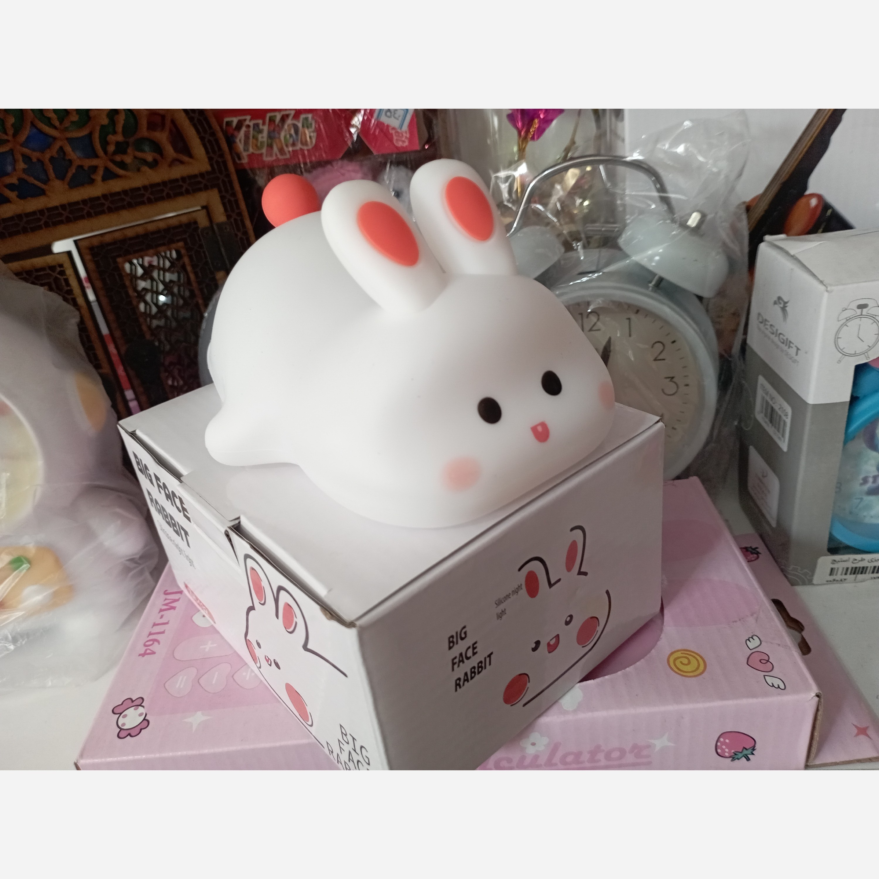 چراغ خواب شارژی سیلیکونی خرگوش خوابیده رنگ نورش تغییر میکنه سبزو زرد و قرمز