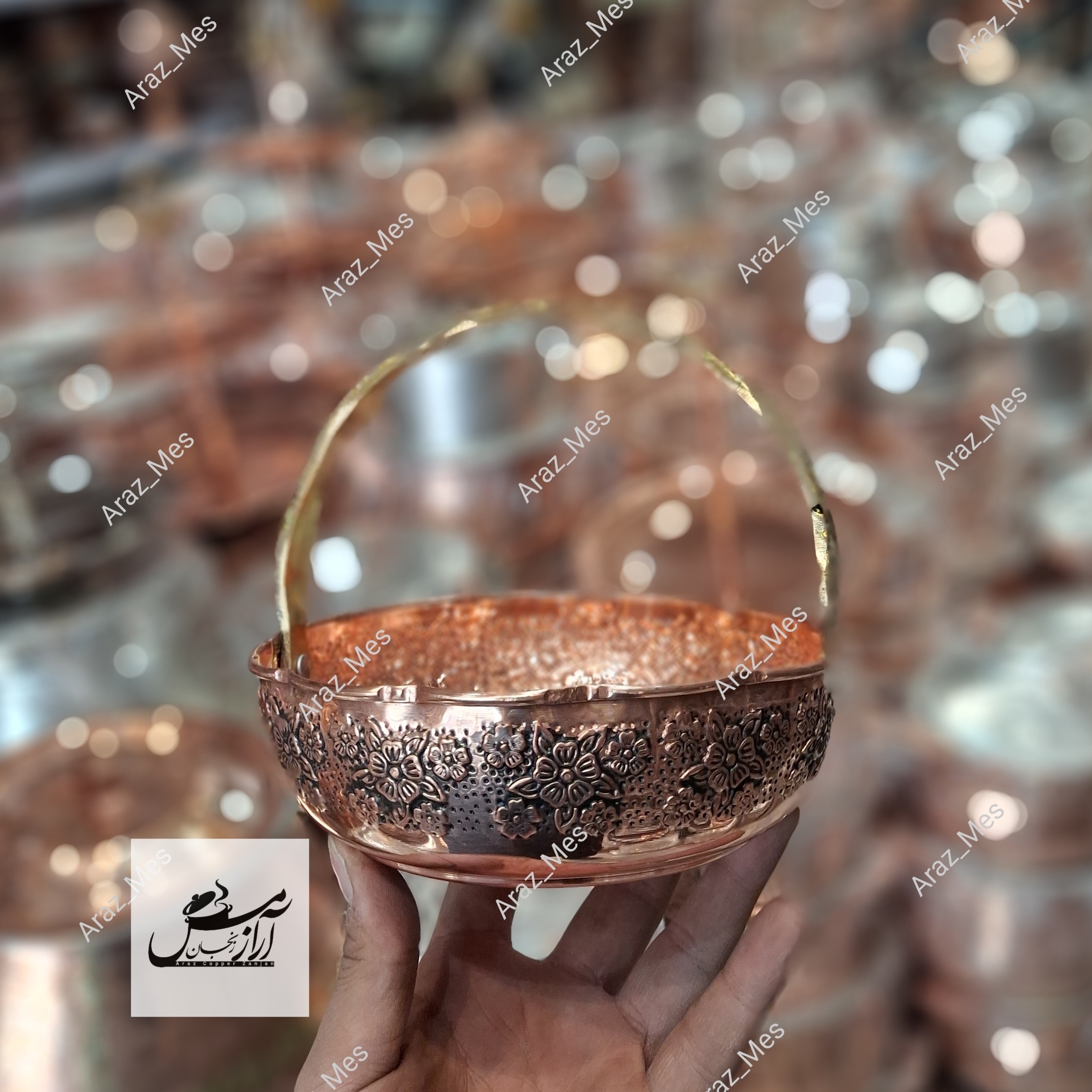 سبد مسی نانو گلبرگ ریز گل رزگل سبد شکلات خوری یا آجیل خوری مبلمونسرا مدل 277460