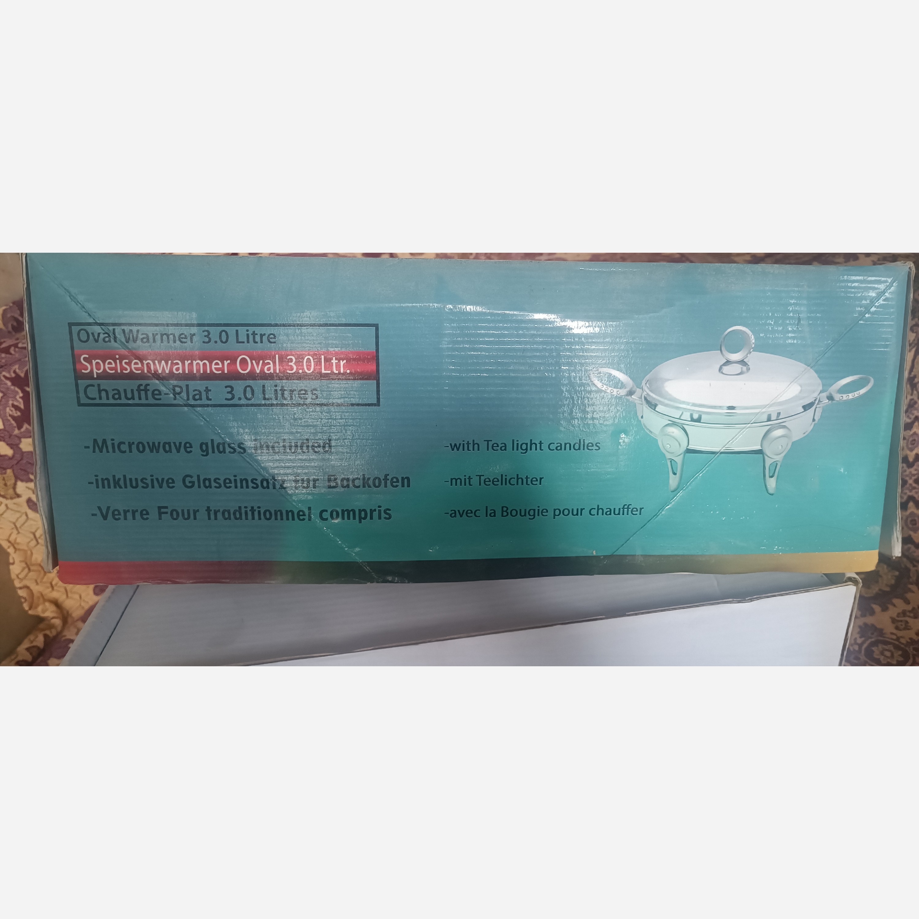 وارمر (گرمکن) غذا با پایه و درب استیل براق 10/18 (ضدزنگ ) دارای ظرف شیشهای پیرکس (ضد اشعه) فقط سایز متوسط موجوده یعنی سه لیتر