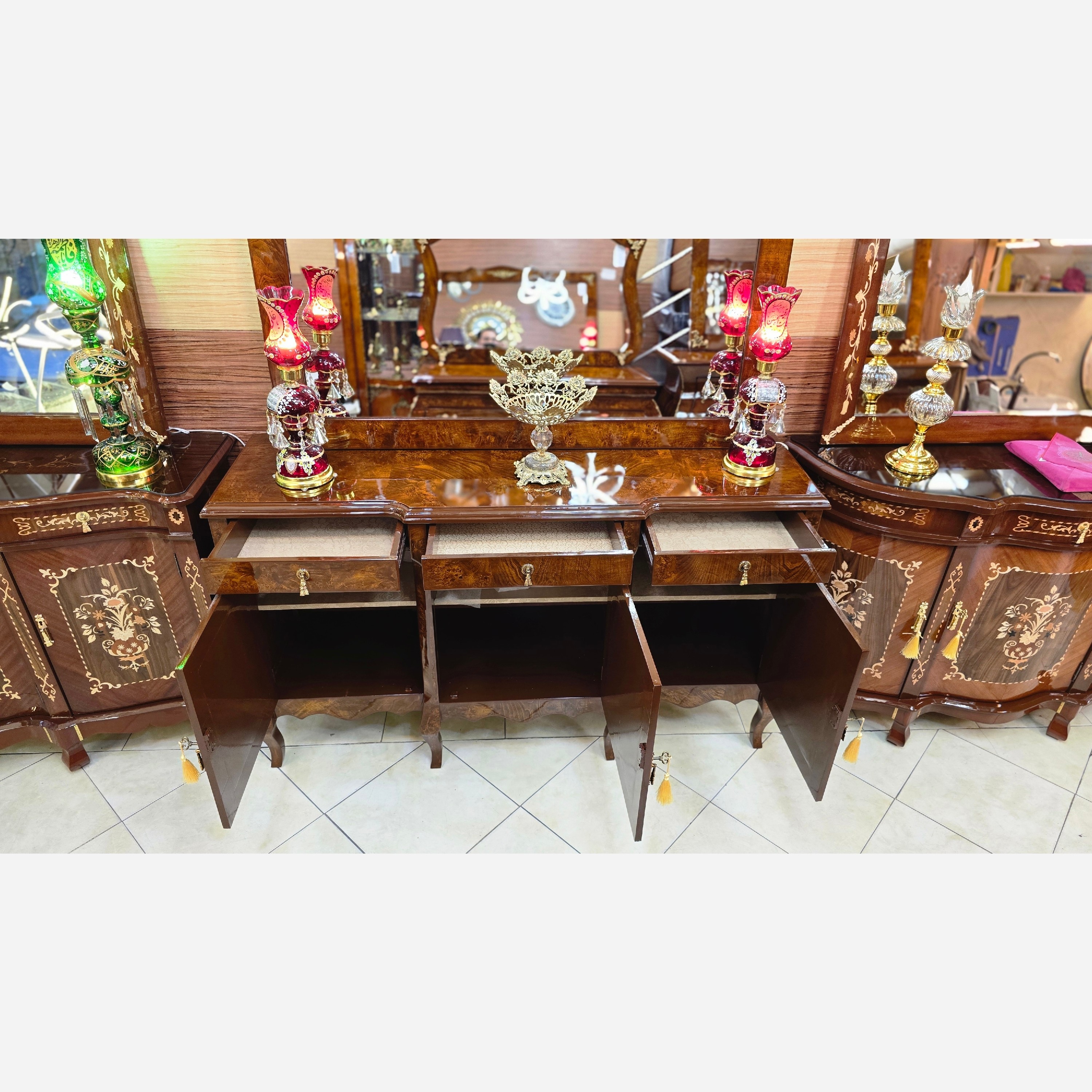 آینه و کنسول سه درب ایتالیایی مازول براق چوبی مبلمونسرا مدل 222307
