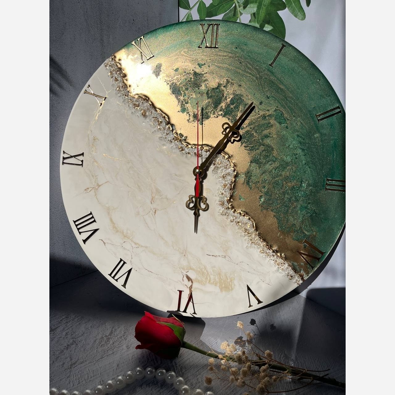 ساعت دیواری شیک با یه طرح خاص مخصوص خونه هایی با دیزاین سبز و سفید طلایی. سایز 40 سانت میباشد قابل اجرا از سایز 30 تا 100 میباشد. موتور آرامگرد با ضمانت.سبک .شفافیت در حد شیشه .محکم و با دوام هم با اعداد انگلیسی و هم اعداد رومی قابل اجراست