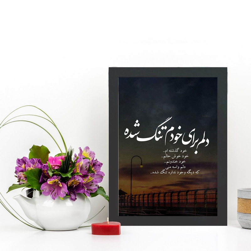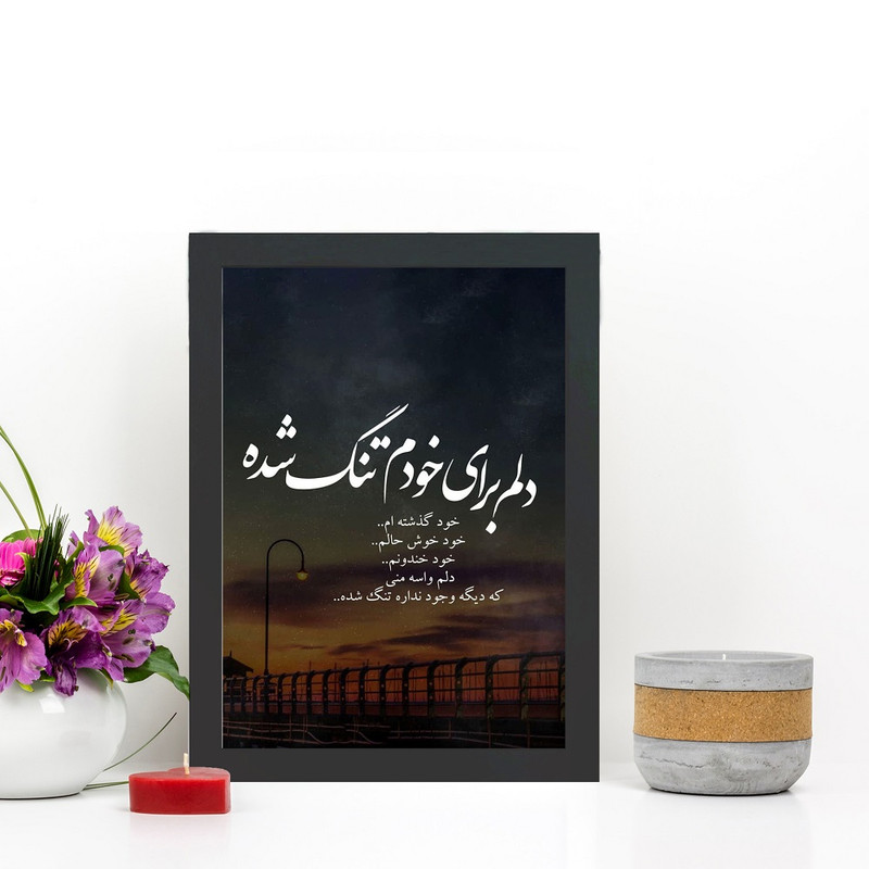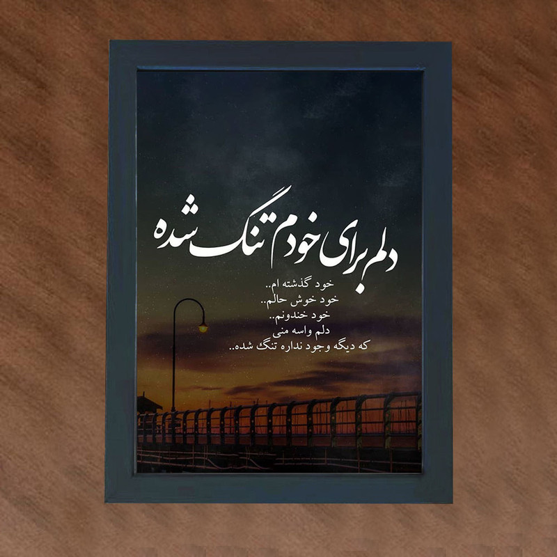 یکی از وسایل تزیینی که به راحتی میتواند حس و حال و فضای داخلی منزل و یا محل کار شما را تغییر دهد و به محیط زندگی شما روح ببخشد,تابلو عکس نوشته میباشد.سعی ما بر این است که با طراحی و ساخت انواع تابلوها متناسب با سلیقه ی شما ، به داشتن محیطی فانتزی متناسب با روحیتان به شما کمک کنیم. مطمئناً دادن هدیه به عزیزان و نزدیکان یکی از لذتبخشترین کارهای دنیاست، این قاب عکس همچنین میتواند هدیه و سورپرایزی برای نزدیکان شما باشد. این قاب عکس در سایزهای مختلف استاندارد و با جنس PVC تولید شده است. این قاب عکس دیواری بوده و توجه داشته باشید ، این قاب عکس توسط تیم گالری چهره پرداز رخ طراحی شده، تمامی حقوق برای گالری چهره پرداز محفوظ است و هرگونه کپی برداری از آثار این مجموعه پیگرد قانونی دارد ، خریداران توجه داشته باشند تمامی قاب ها باید دارای آرم گالری چهره پرداز رخ باشند، قاب های ارسالی که فاقد آرم گالری چهره پرداز رخ باشند به معنای اصیل نبودن کالای خریداری شده میباشد. همچنین شما میتوانید کالاهای خود را به صورت سفارشی سازی شده با « عکس و متن دلخواه خود » از سایت اصلی « گالری چهره پرداز رخ » خریداری کنید. مشخصات فنی محصول: ** مشخصات ** نوع کاربرد: دیواری مقاوم در برابر: ضربه ویژگی ظاهری تابلو: دارای قاب سایر توضیحات: متن تابلو: دلم برای خودم تنگ شده، خود گذشته ام... خود خوش حالم... خود خندونم... دلم واسه منی که دیگه وجود نداره تنگ شده...