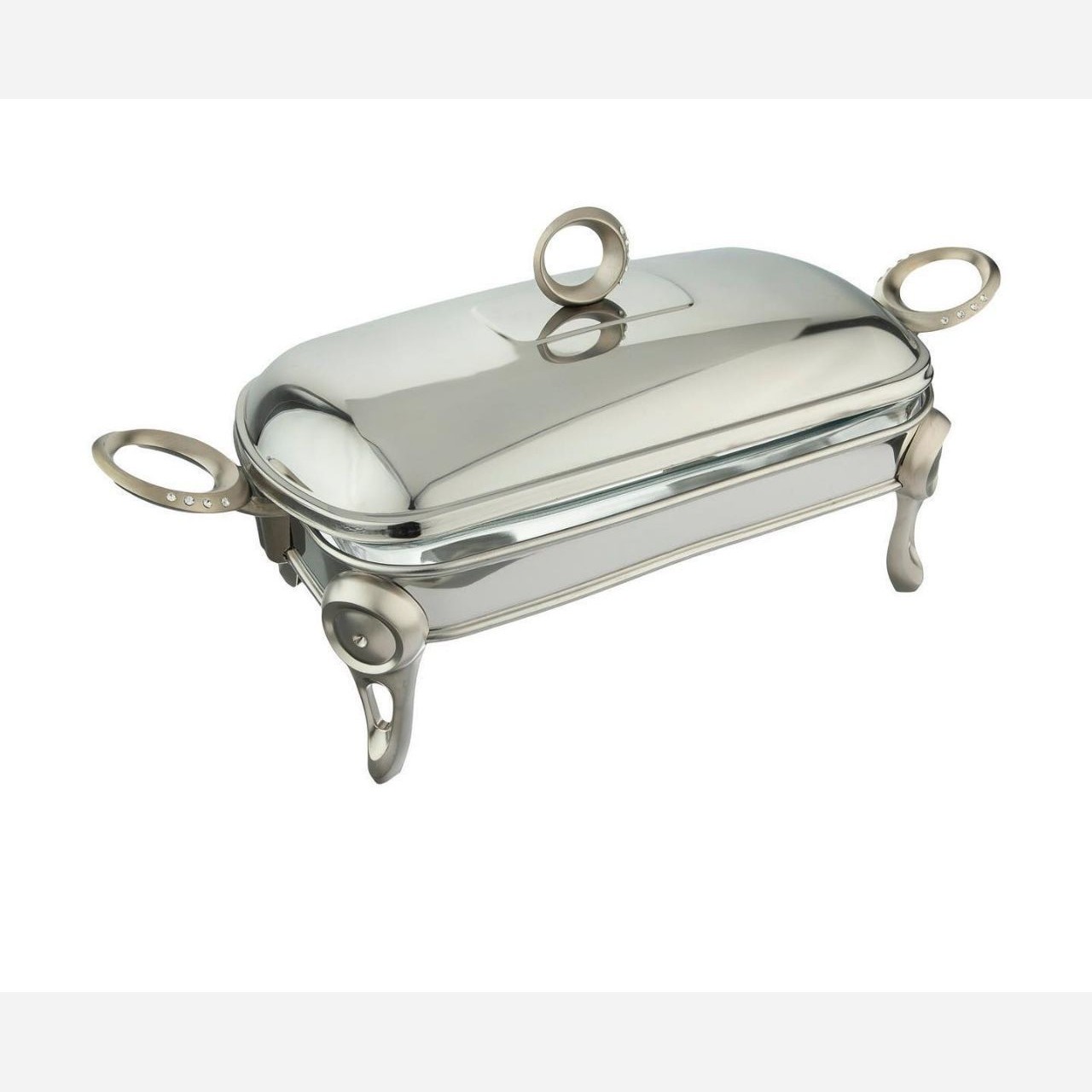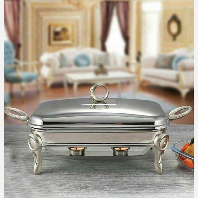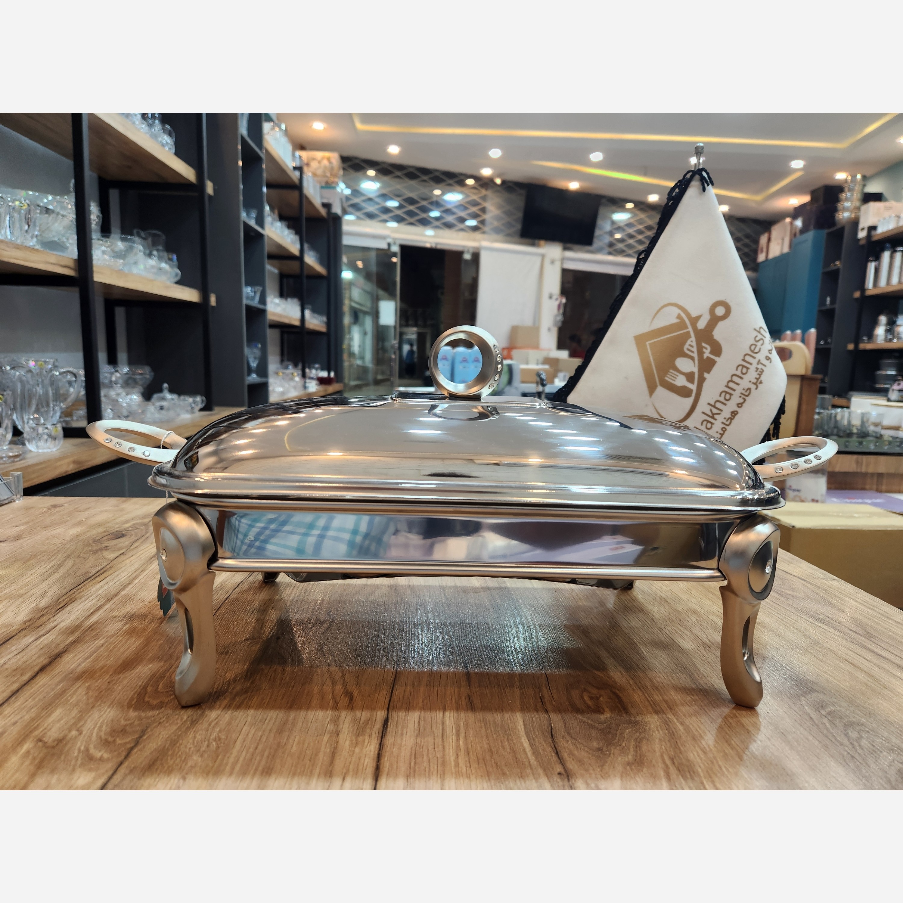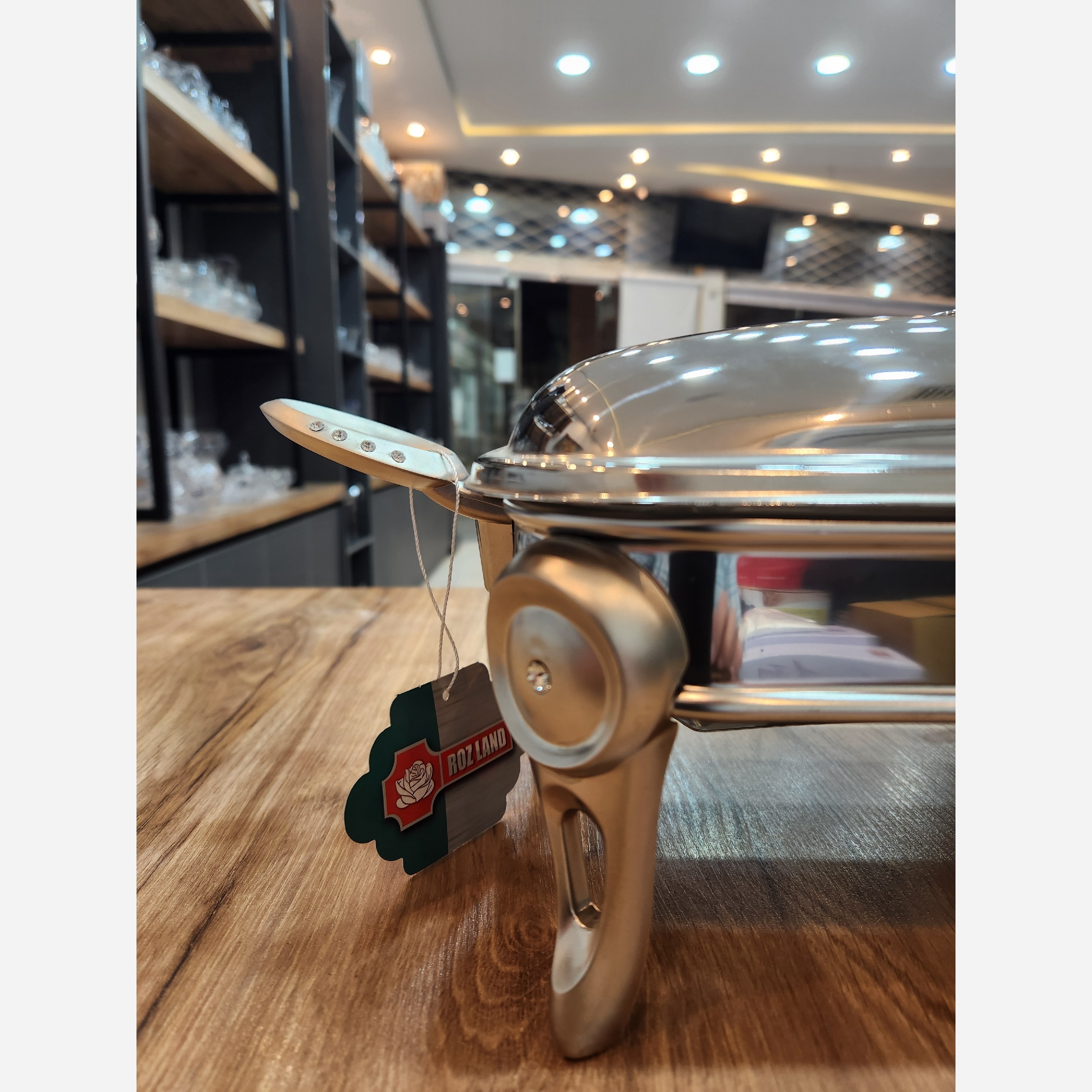 سوفله مرغ خوری دسته نگین رزلند برای پذیرایی شیک و لاکچری مجالس و مهمانی های شماست. بدنه استیل براق با نگین کاری دسته و درب در عین سادگی نمایی چشم نواز و همه پسند به کار بخشیده است. بدنه استیل اعلا18/10 نگیر ضد زنگ و ظرف داخل پیرکس مقاوم در برابر حرارت است. قسمت پایین دو عدد وارمر دارد که باعث گرم و لذیذ ماندن مواد غذایی به مدت طولانی می شود. این محصول زیبا بسیار کاربردی است و هر کدبانوی هنرمند ایرانی به طور حتم نیازمند آن. طول محصول با احتساب دسته ها 48 سانتیمتر عرض محصول 24 سانتیمتر ارتفاع محصول با درب 21 سانتیمتر