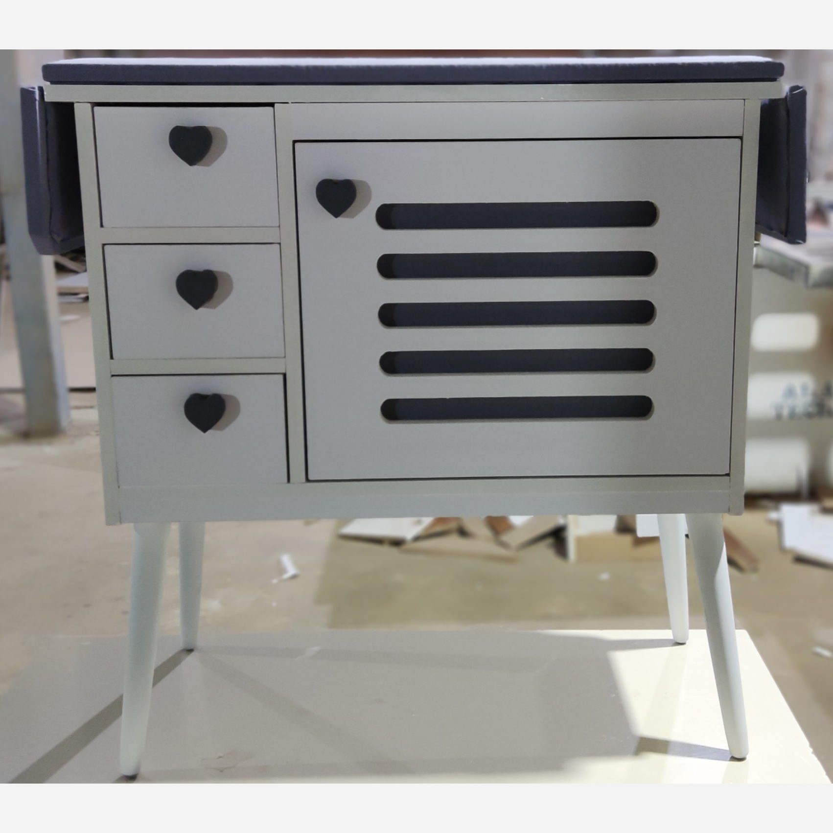 این میز اتو محصول و تولید جدیدمونه و دارای جای چرخ خیاطی و تشک اتو و 3کشو جهت گزاشتن منسوجات خیاطی این مدل میز اتو مدل تلوزیونی هستش و مژده به مشتریان عزیزمون این محصول به صورت رایگان ارسال میشه و درب منزل تقدیم مشتری عزیزمون میشه