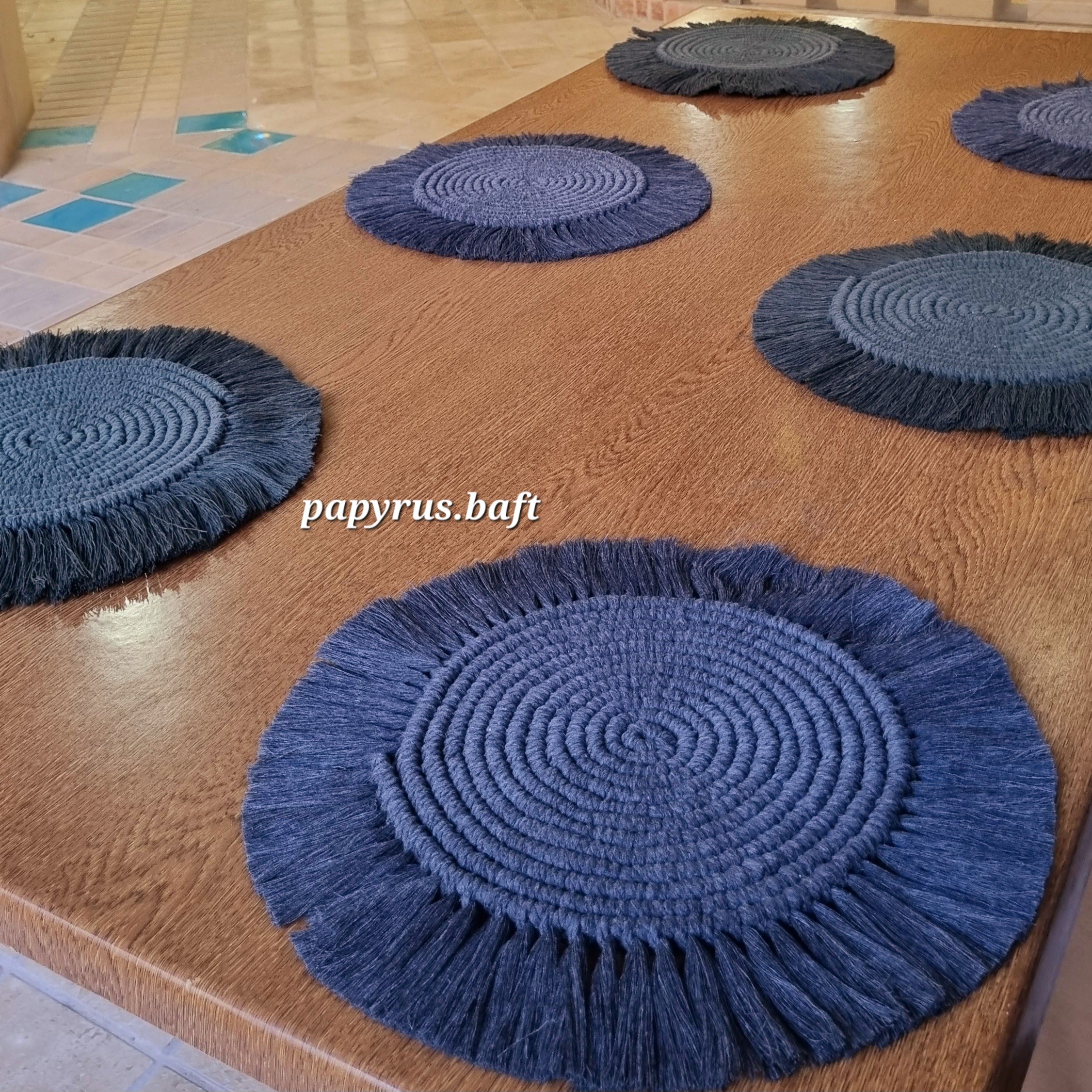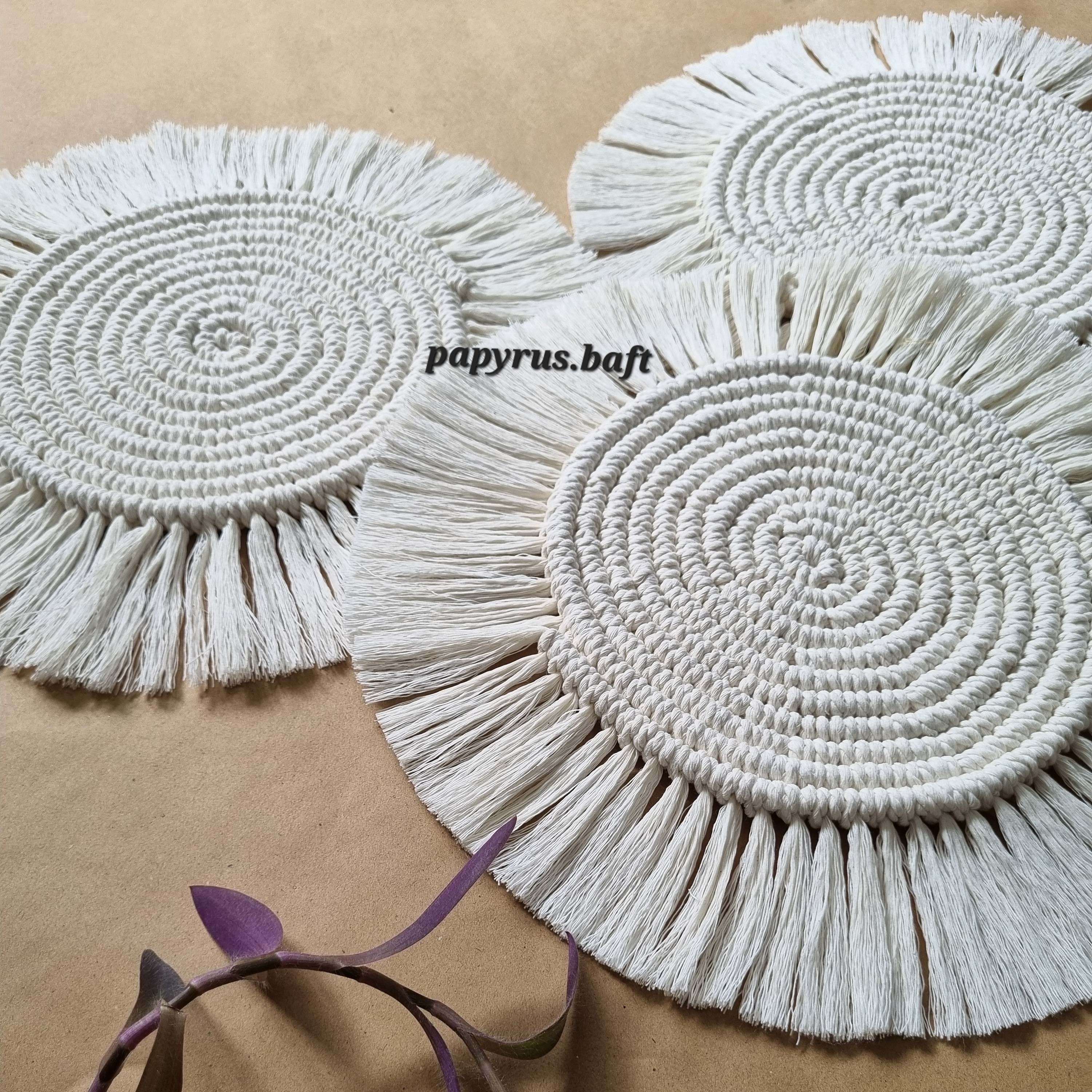 زیربشقابی گرد مکرومه بافی پاپیروس مبلمونسرا مدل 300348