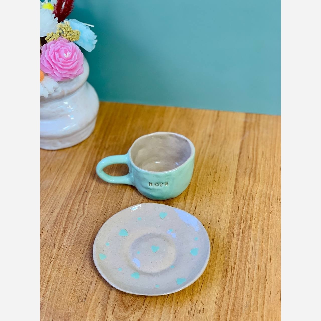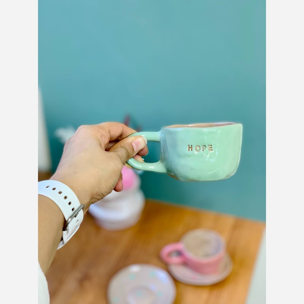 نیم ماگ سرامیکی hope به معنی امید گزینه خوبی برای هدیه دادنه یه هدیه دست ساز با ارزش که پیام امید داشتن رو انتقال میده😍 جنسش سرامیک با پخت بالا در کوره رنگ ها کوره ای و ثابت هستند تضمین استفاده طولانی مدت و روزانه استفاده از لعاب مصرفی_خوراکی قابلیت استفاده در ماشین ظرفشویی و مایکروفر باخیال راحت سالها از این ماگ ها استفاده کنید👌😍 قابل سفارش در هر رنگ و با هر تکست