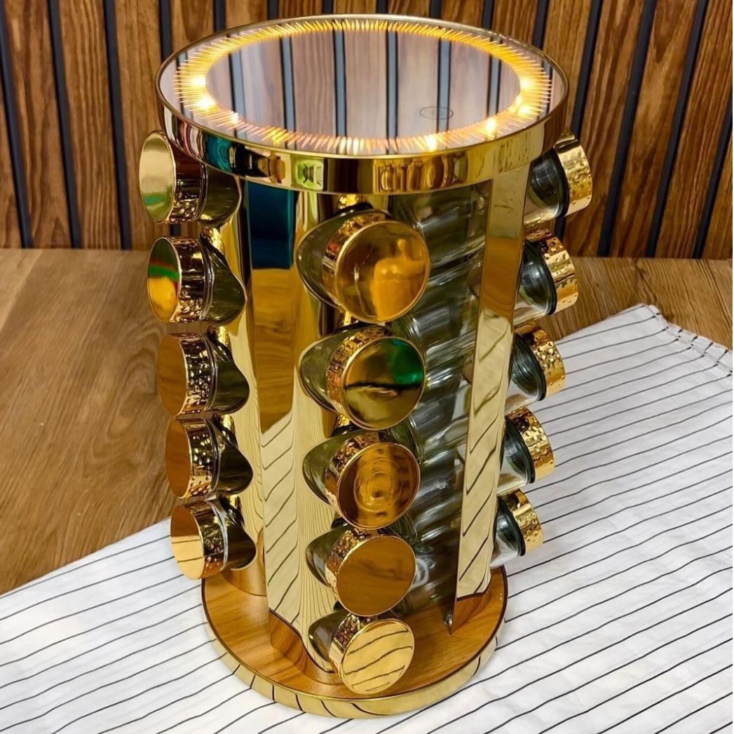 جا ادویه استیل 20 تایی بدنه تمام استیل ضد زنگ درب ها به صورت نمک پاش هست