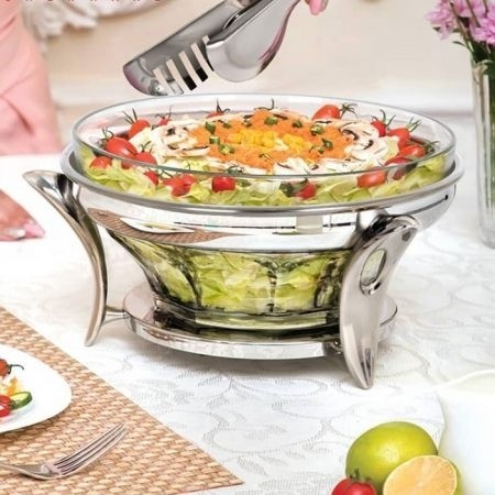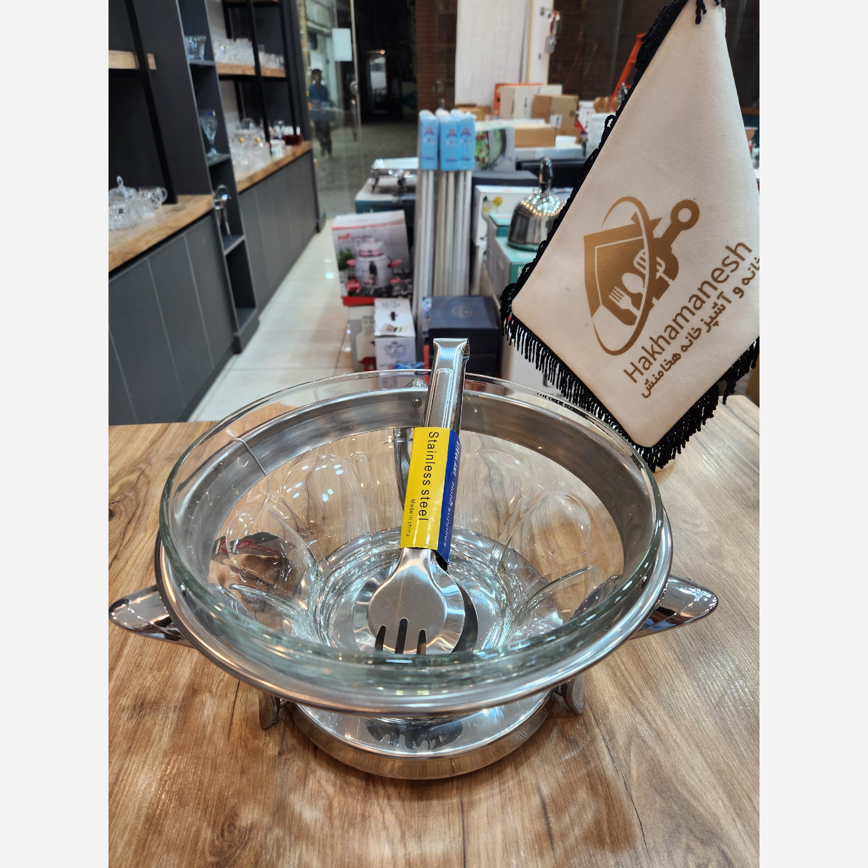 سوفله سالاد خوری استیل دسته قایقی رزلند مخصوص مجالس و مهمانی های لاکچری شماست. بدنه استیل براق با طراحی خاص پایه ها در عین سادگی ظاهری شیک و چشم نواز به محصول داده است .بدنه استیل اعلا ضدزنگ 18/10 است. همراه این محصول یک عدد انبر سالاد استیل تقدیم شما می شود. این محصول بسیار کاربردی بوده و هر کدبانوی هنرمند ایرانی صددرصد نیازمند آن می شود. قطر دهانه 27 سانتیمتر ارتفاع 15 سانتیمتر